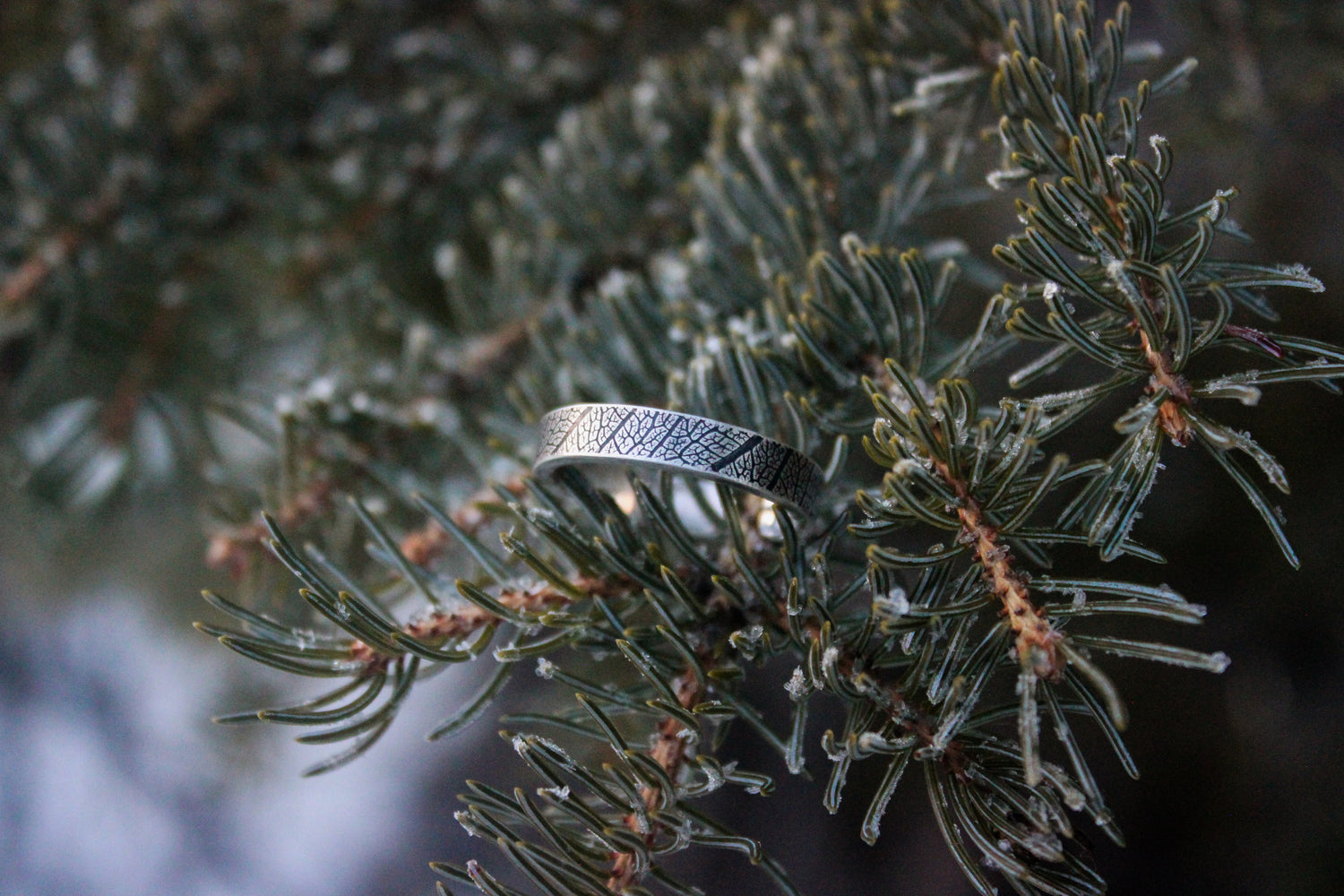 Real leaf veins rolled into silver, as if the tree were holding your hand.
