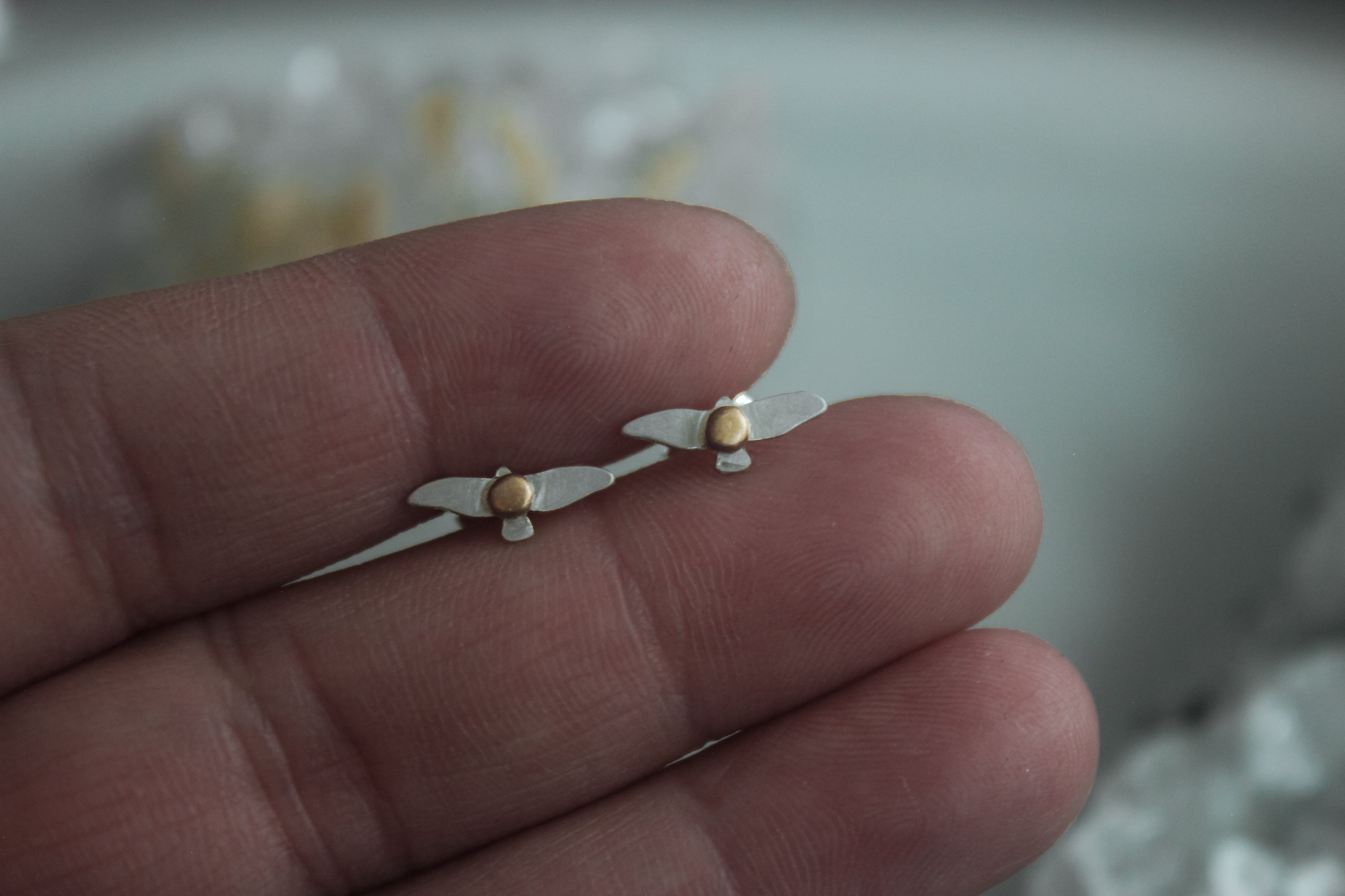 Tiny birds soar along the winds, the sun beaming hot upon their feathers. These bird studs are lightweight and super easy to wear, perfect for those of you who love simplicity with just a touch of nature.