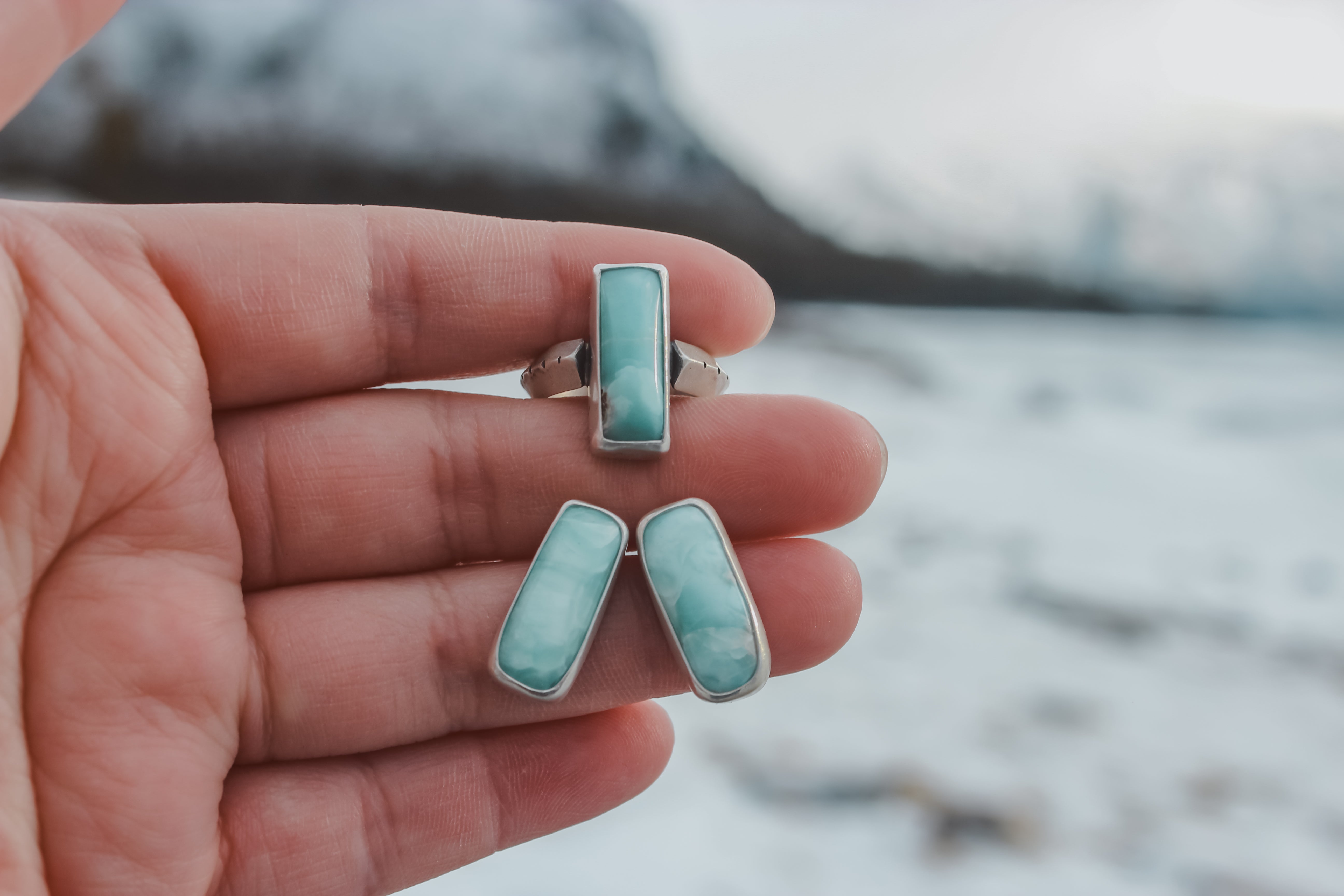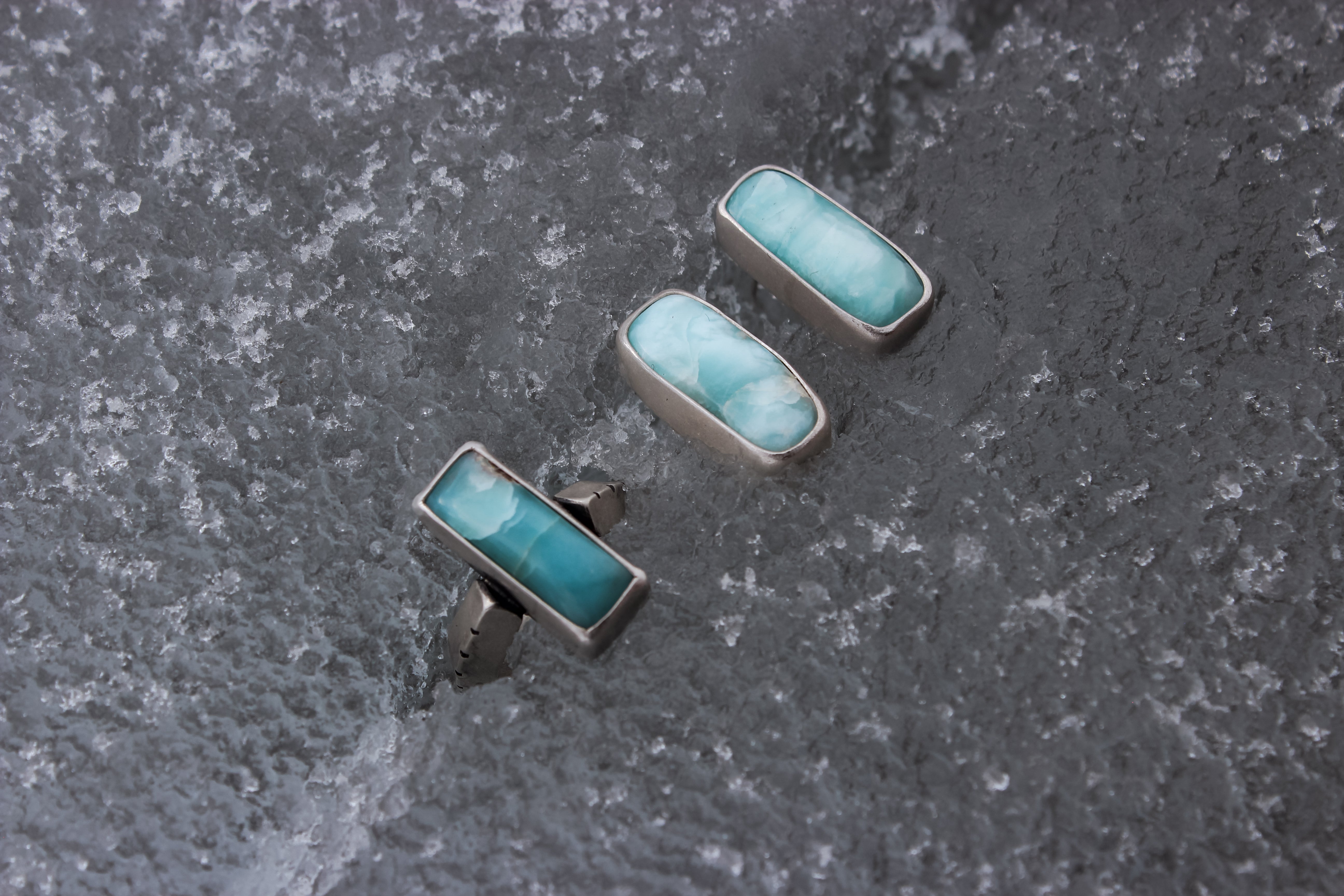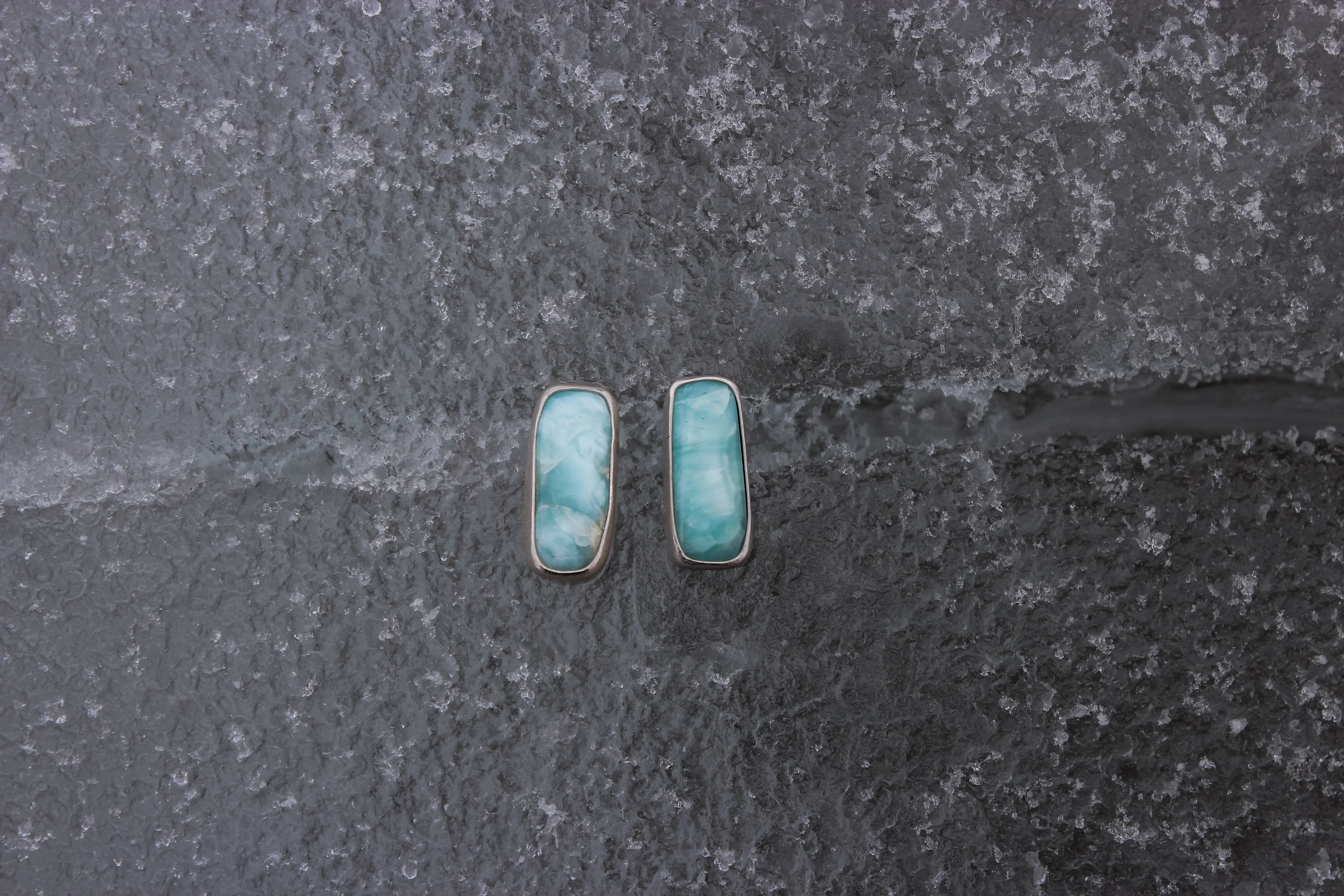 Pools of swirling blue and white dance within sterling walls in these gorgeous, simple studs. Larimar is a stone only found in the Dominican Republic, harnessing the Caribbean waters in each stunning stone.