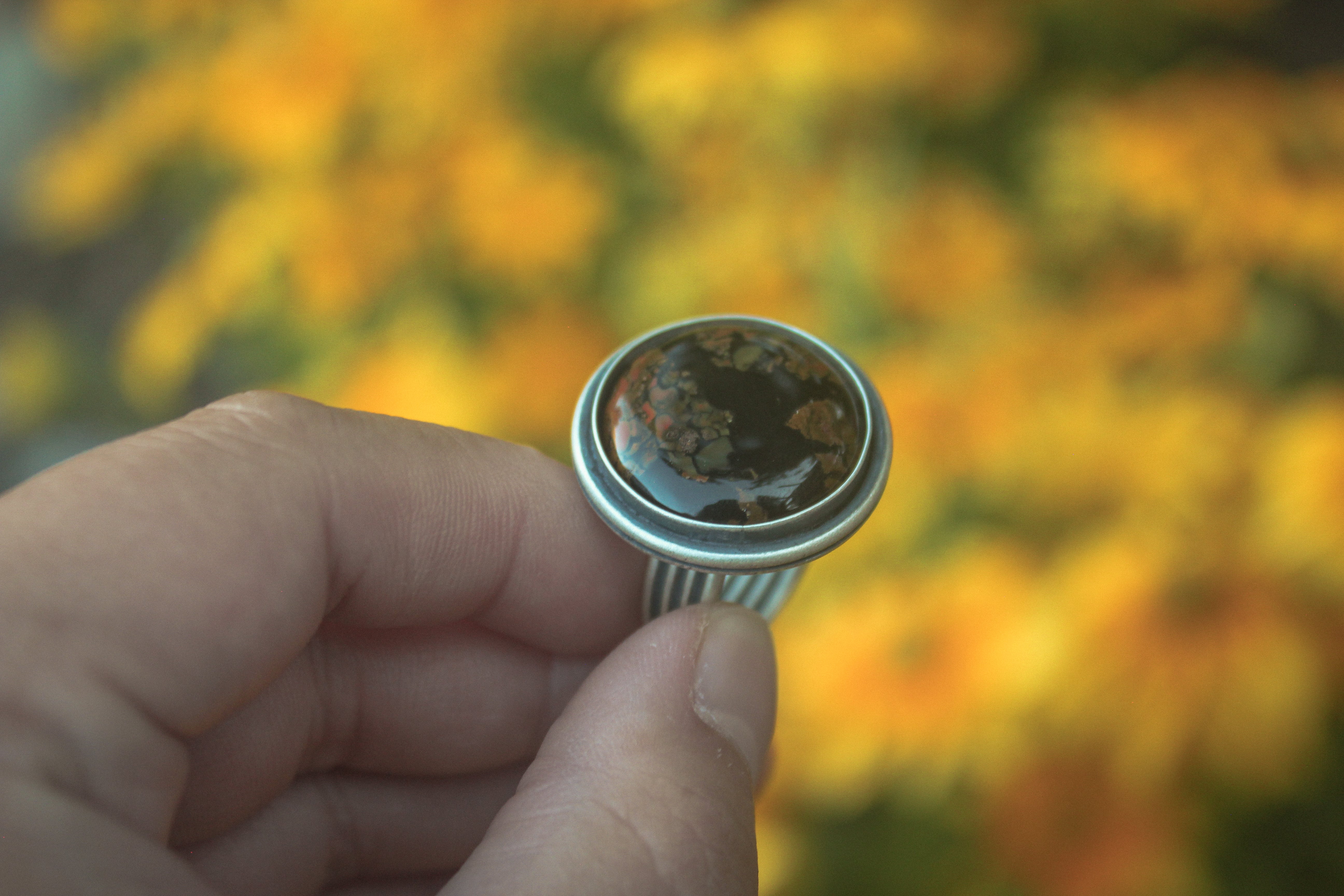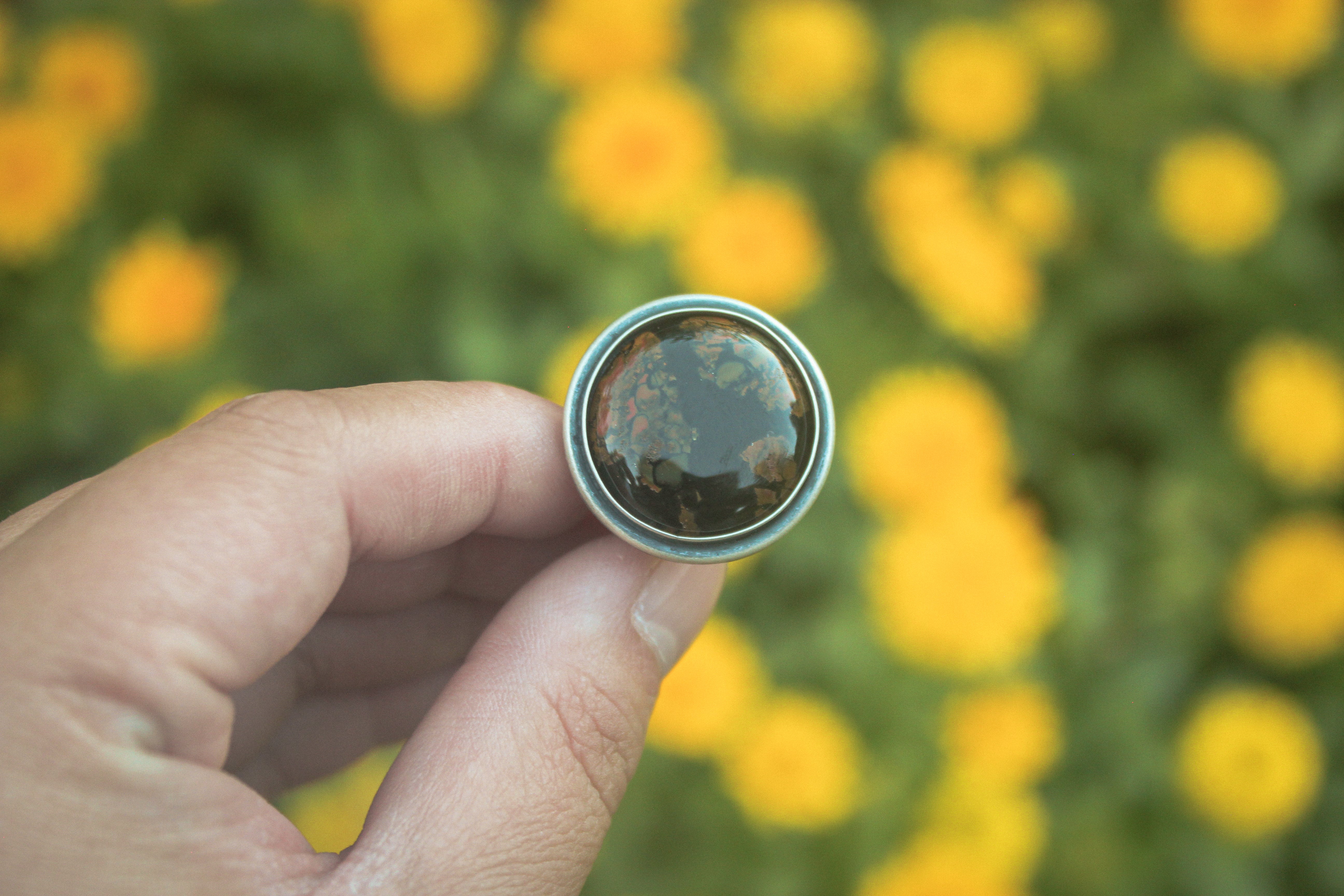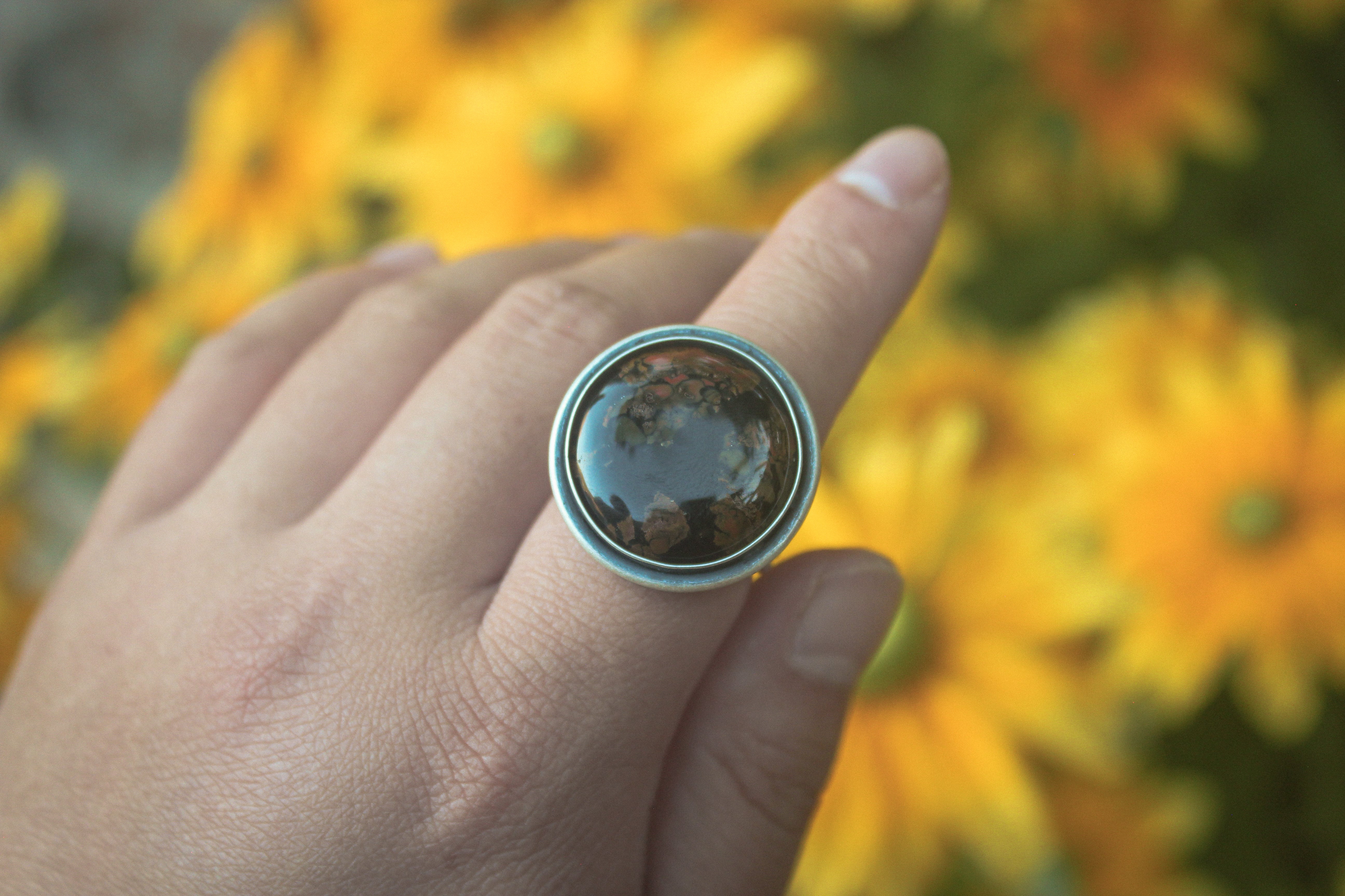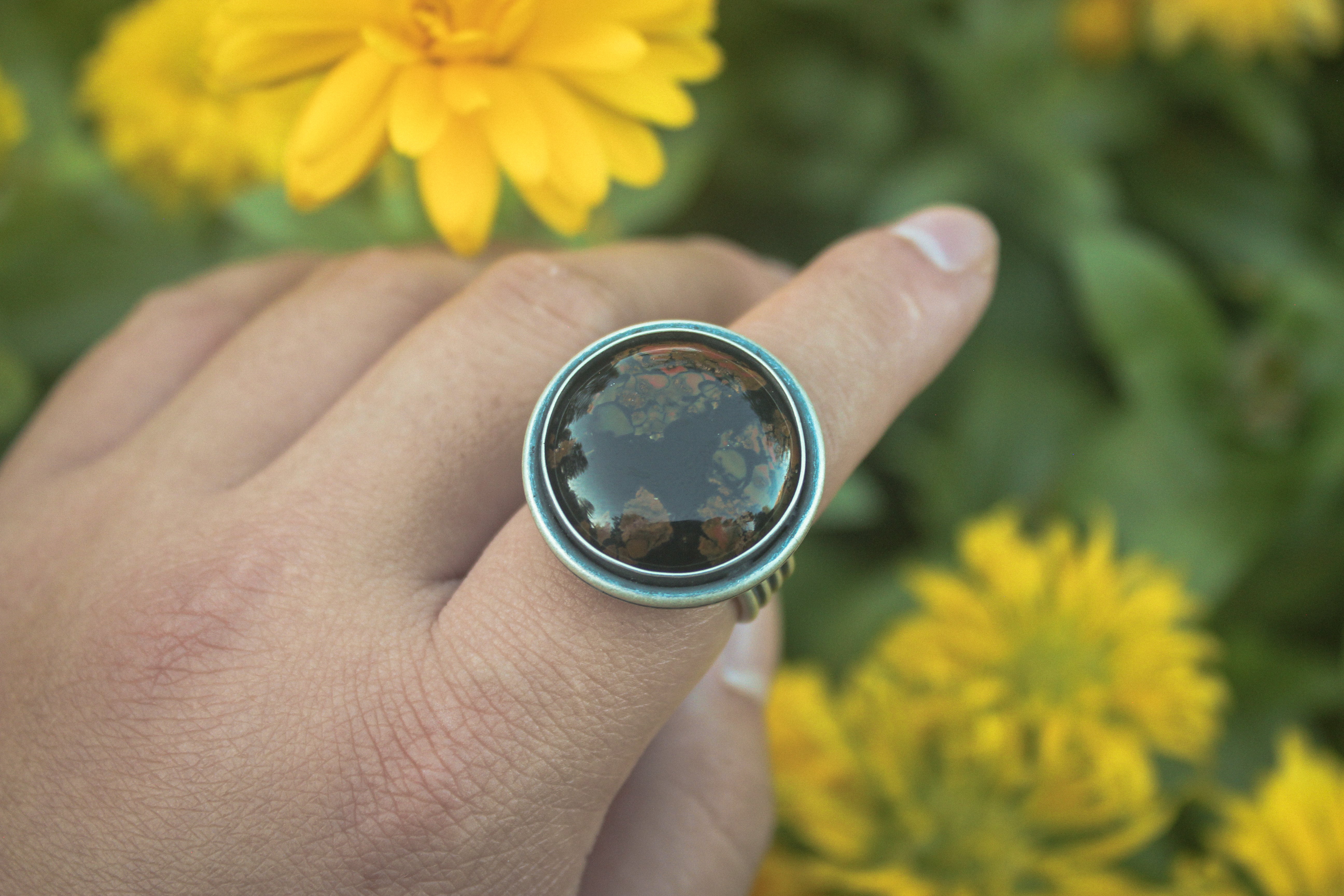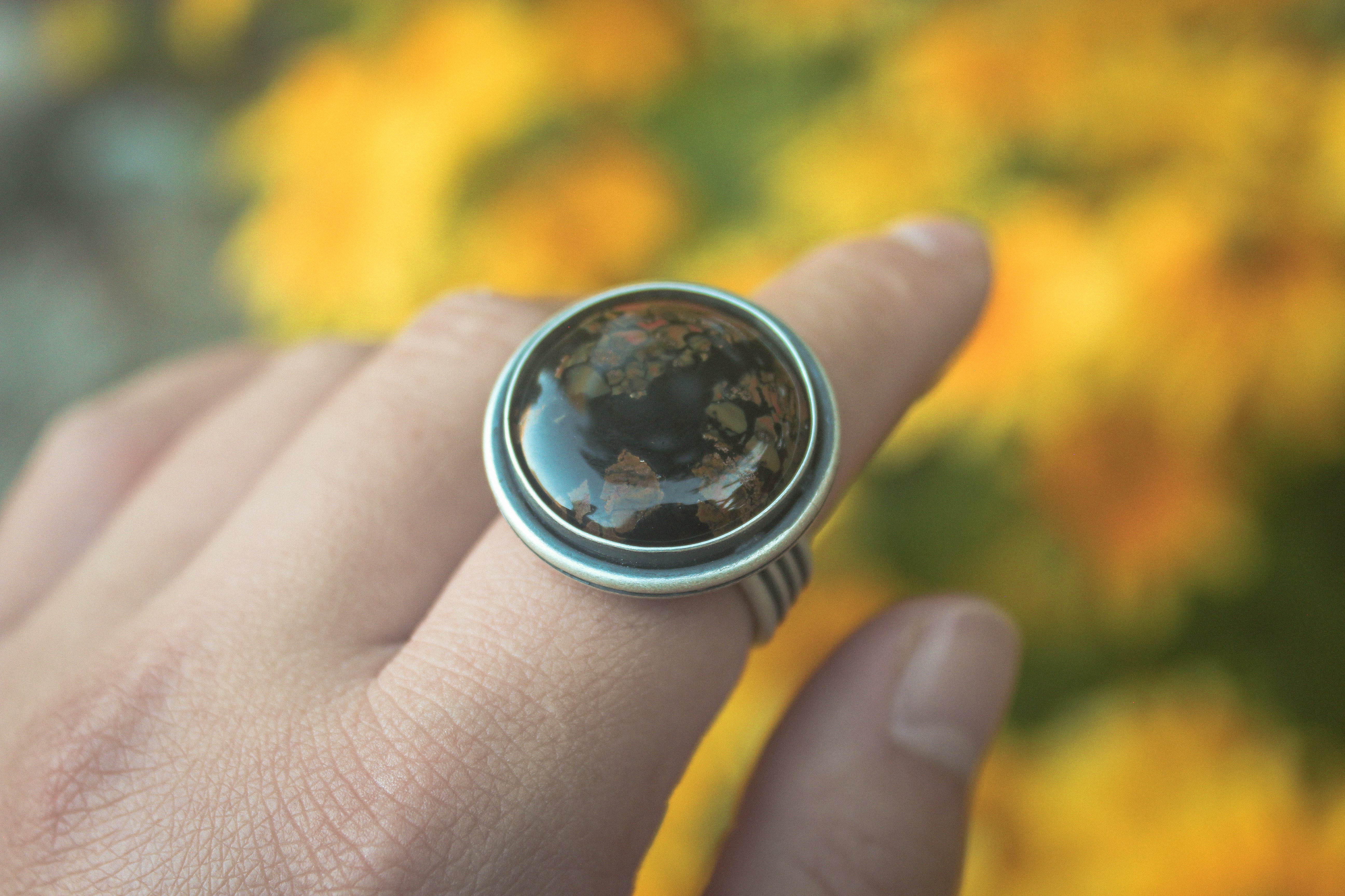 Absolutely gorgeous ring - the stone has even more depth in person, the setting lets it shine but also compliments it well, and the band is beautiful and comfortable. Emily was really helpful with regards to the sizing and it came quickly and beautifully wrapped. I love wearing it (with my feather earrings!). Emily is lovely and a very talented artist - if you’re eyeing a piece get it!