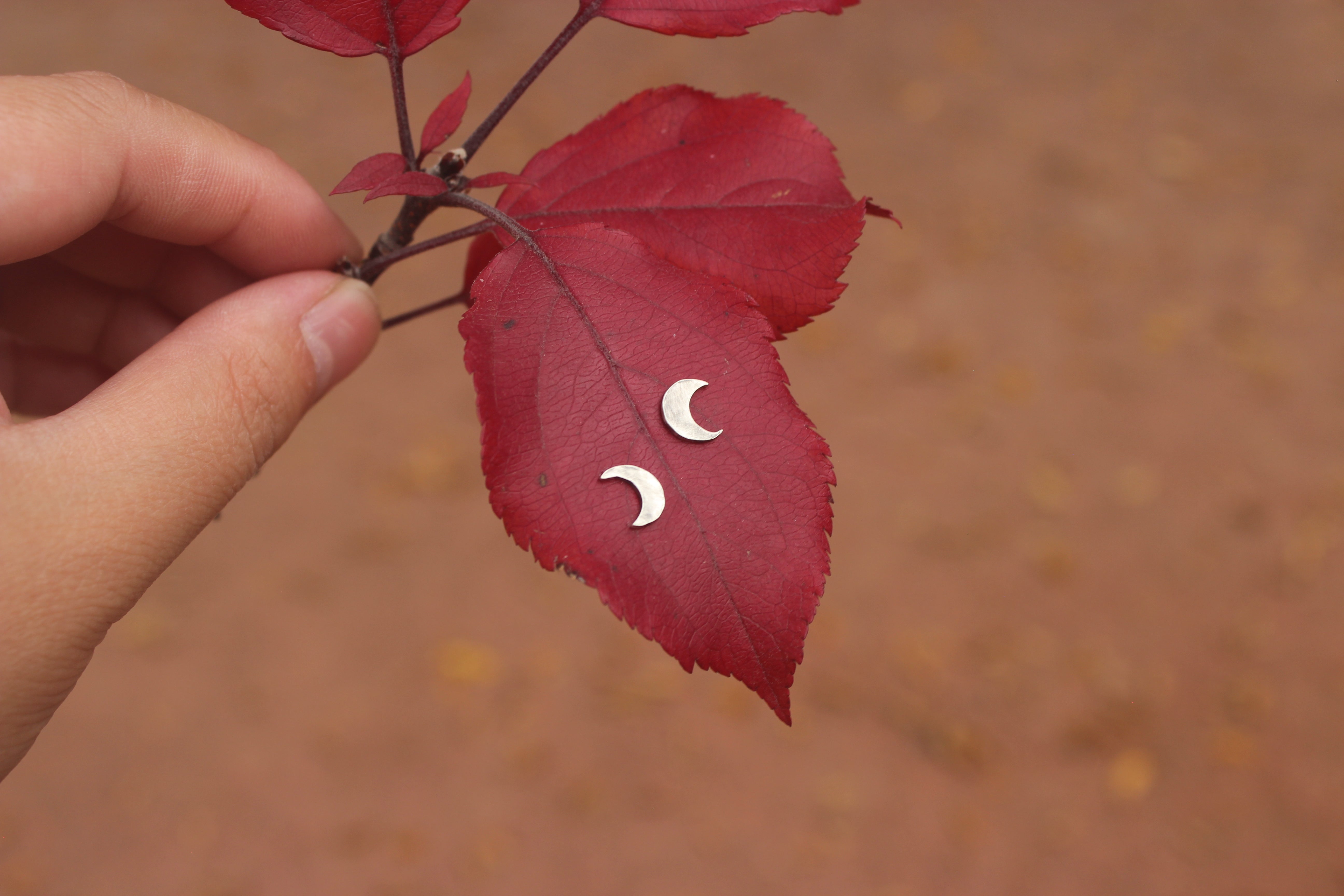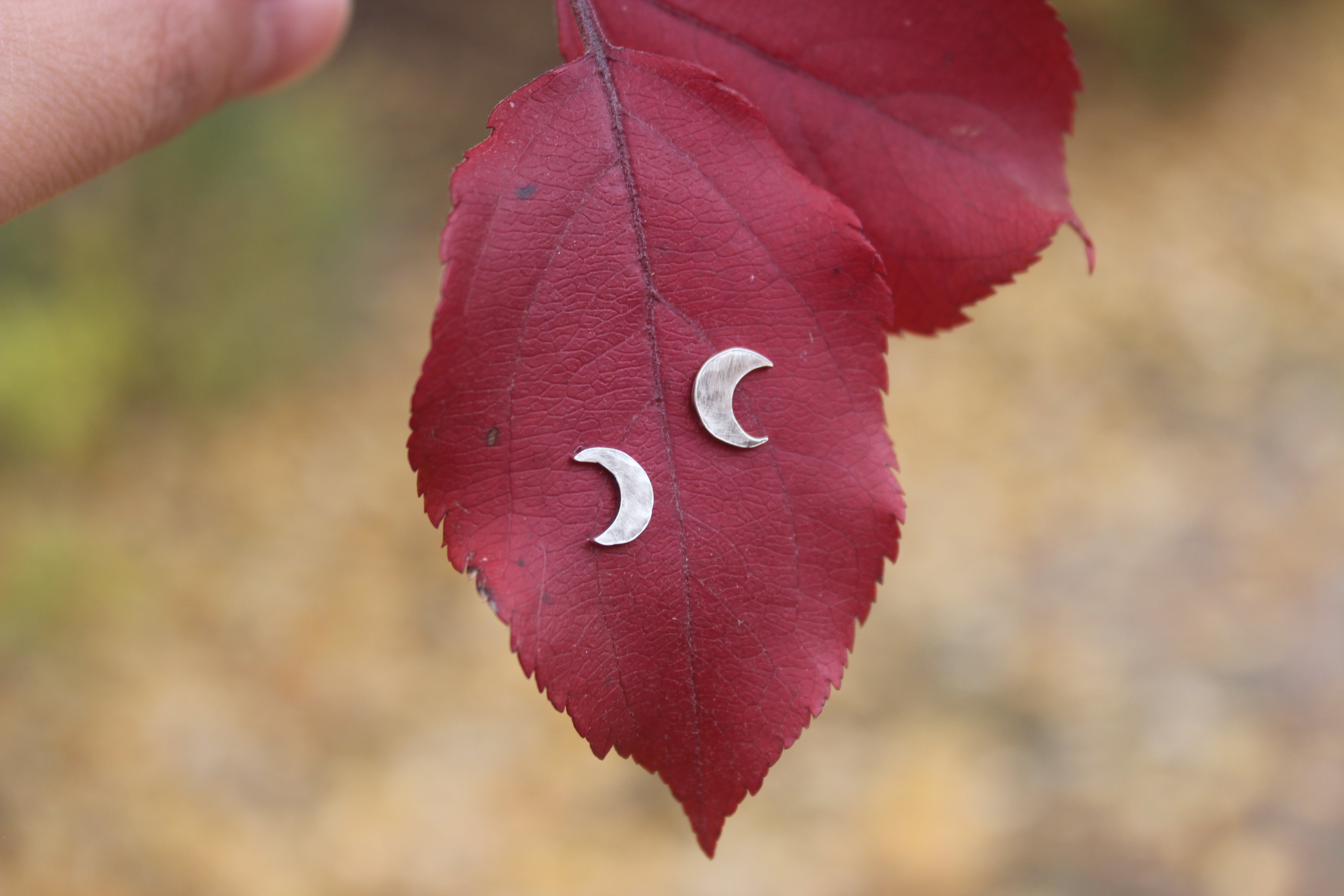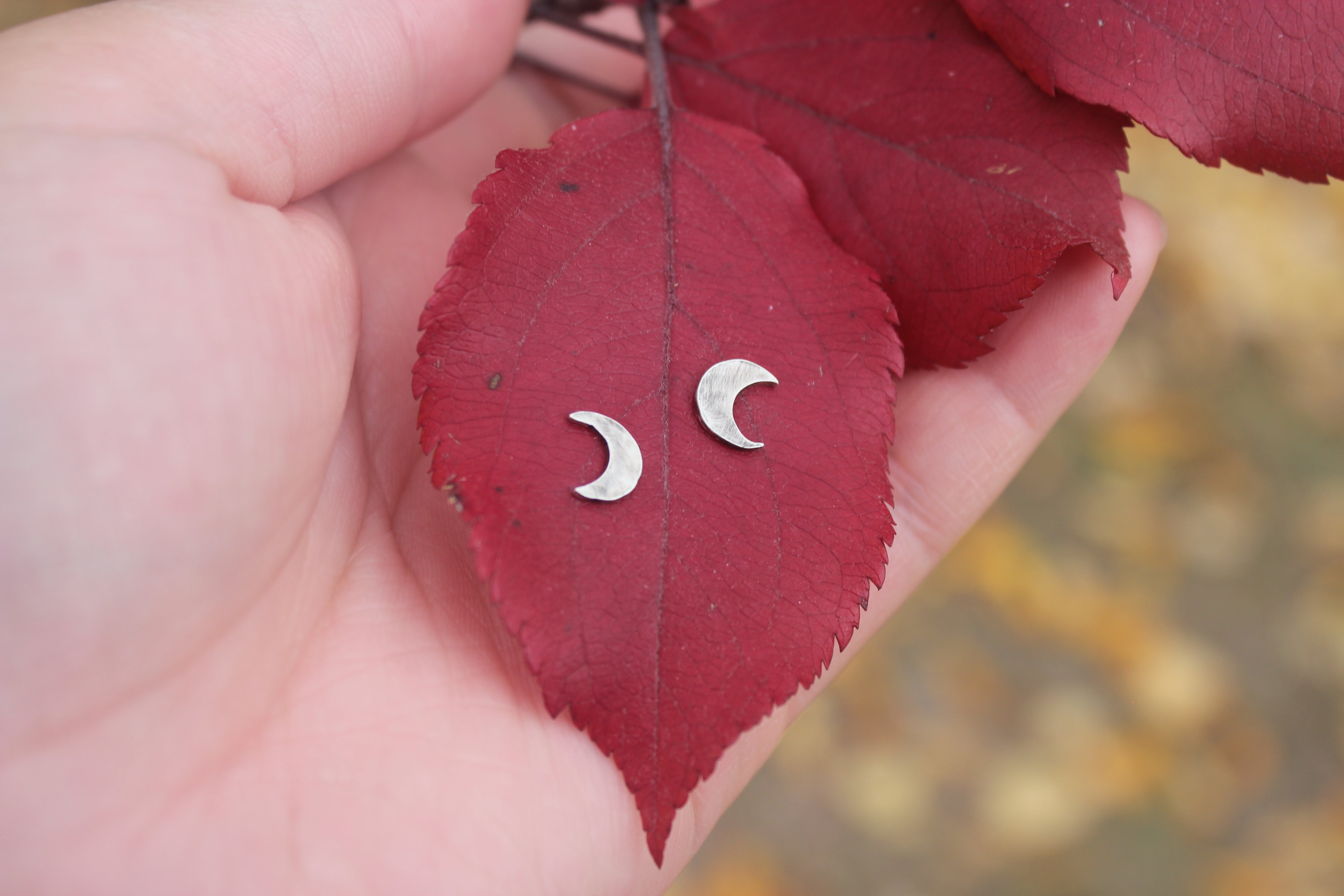 These adorable little studs feature hand cut crescent moons, lightly hammered for a bit of texture, then darkened to bring out each hammer strike. They are the perfect size for everyday wear!