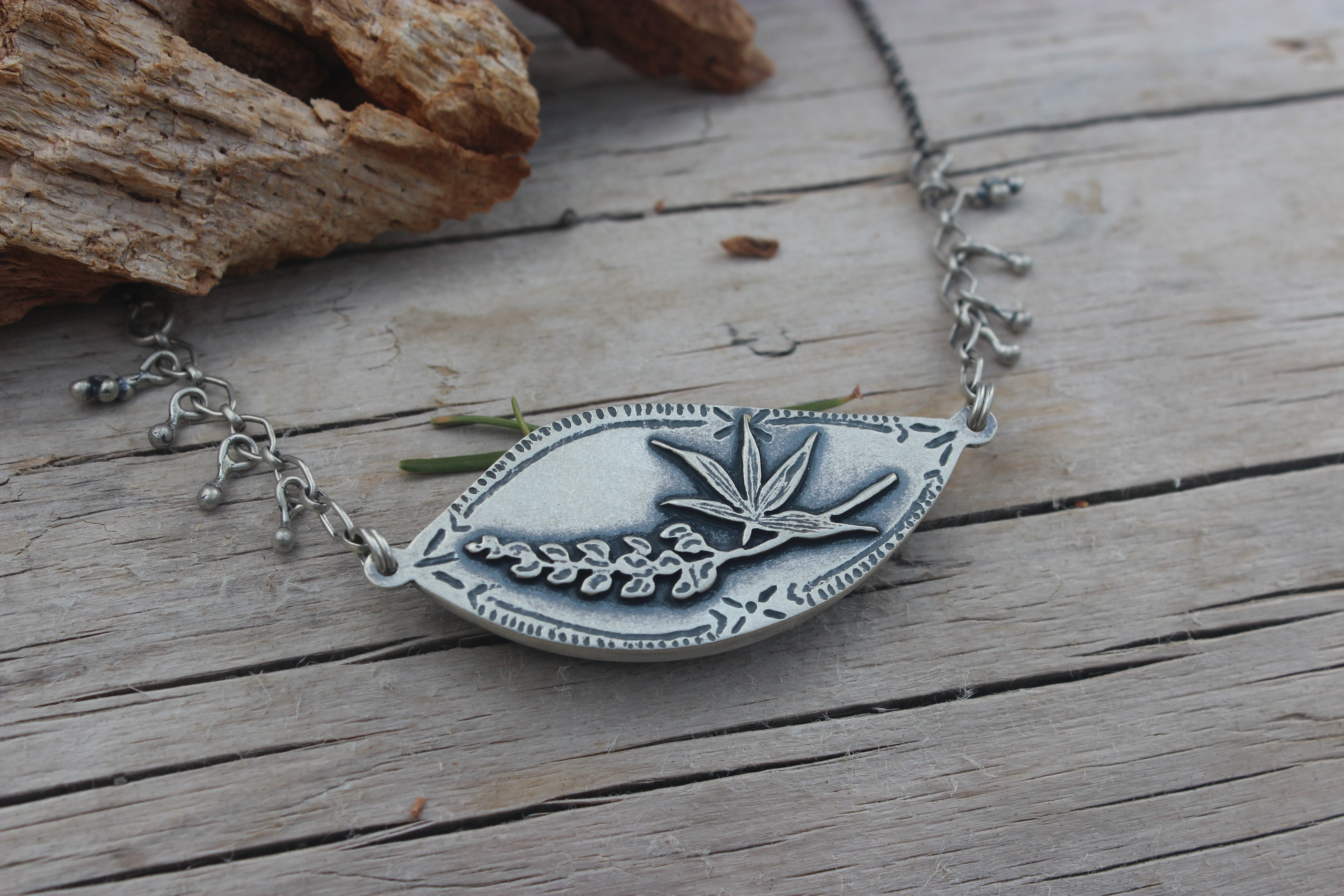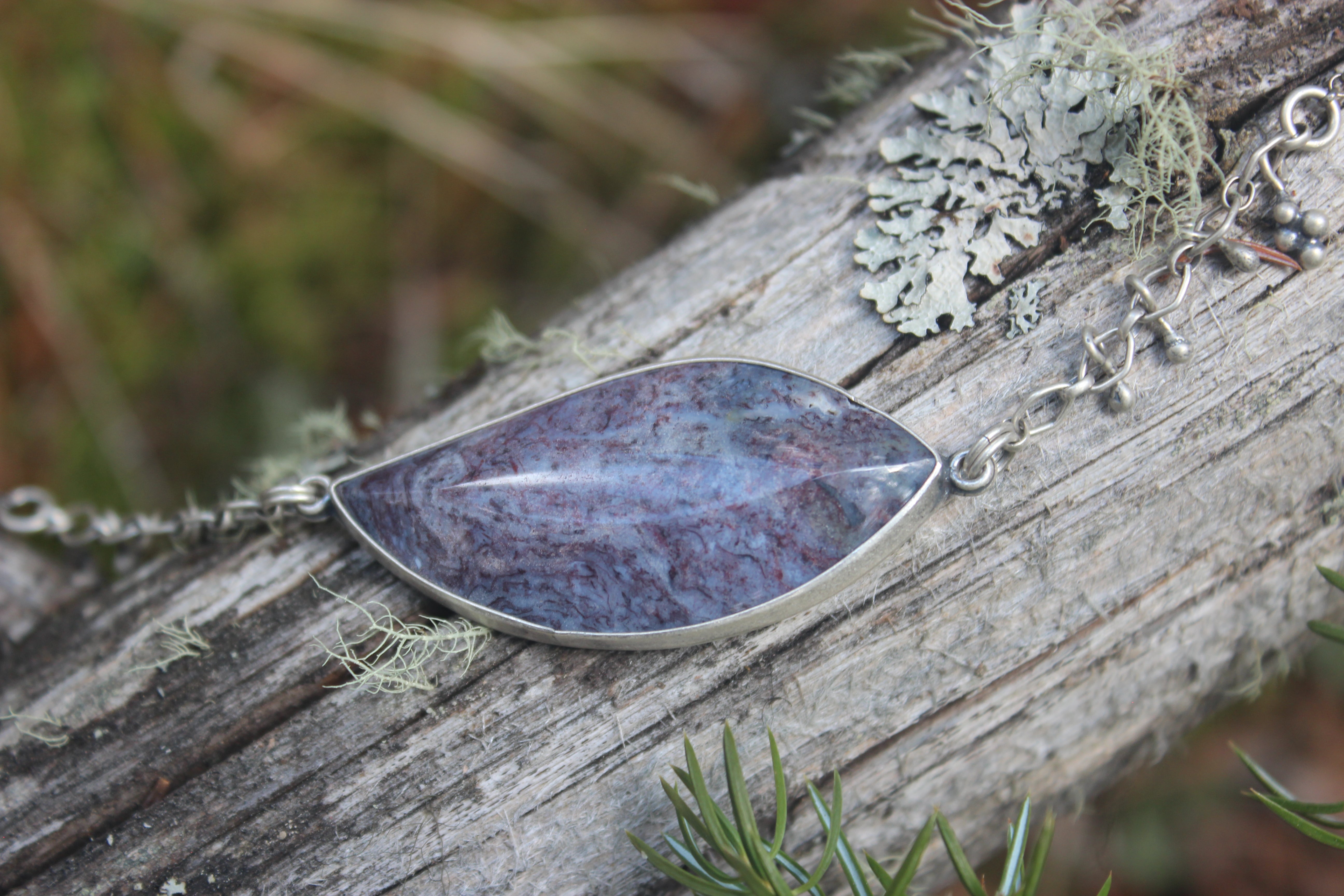 I've picked stones to match the colors of the blooms, and sawed out delicate silver renditions of each on the backside of the pendants, carving little details into every little bloom. Each chain comes with little extra details as well, to add a point of interest to an otherwise plain chain. Completely reversible for a 2-in-1 piece!