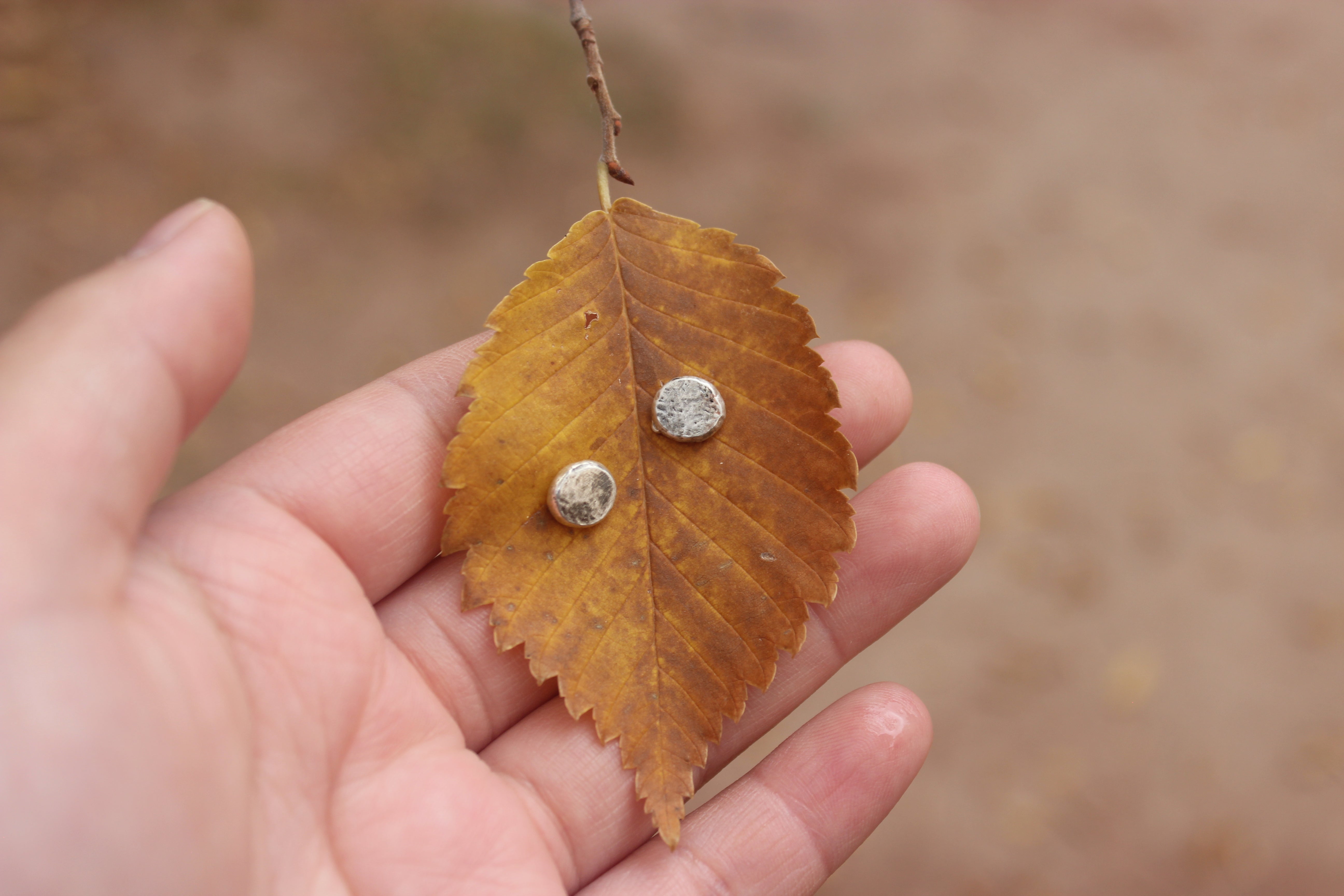 These adorable studs are made by melting sterling silver scrap and hammering them for texture. To me they resemble river rocks, with their slightly textured yet smooth surface, just like the smooth pebbles eroded over time within the water. They have a nice weight, and are comfy enough for everyday wear!