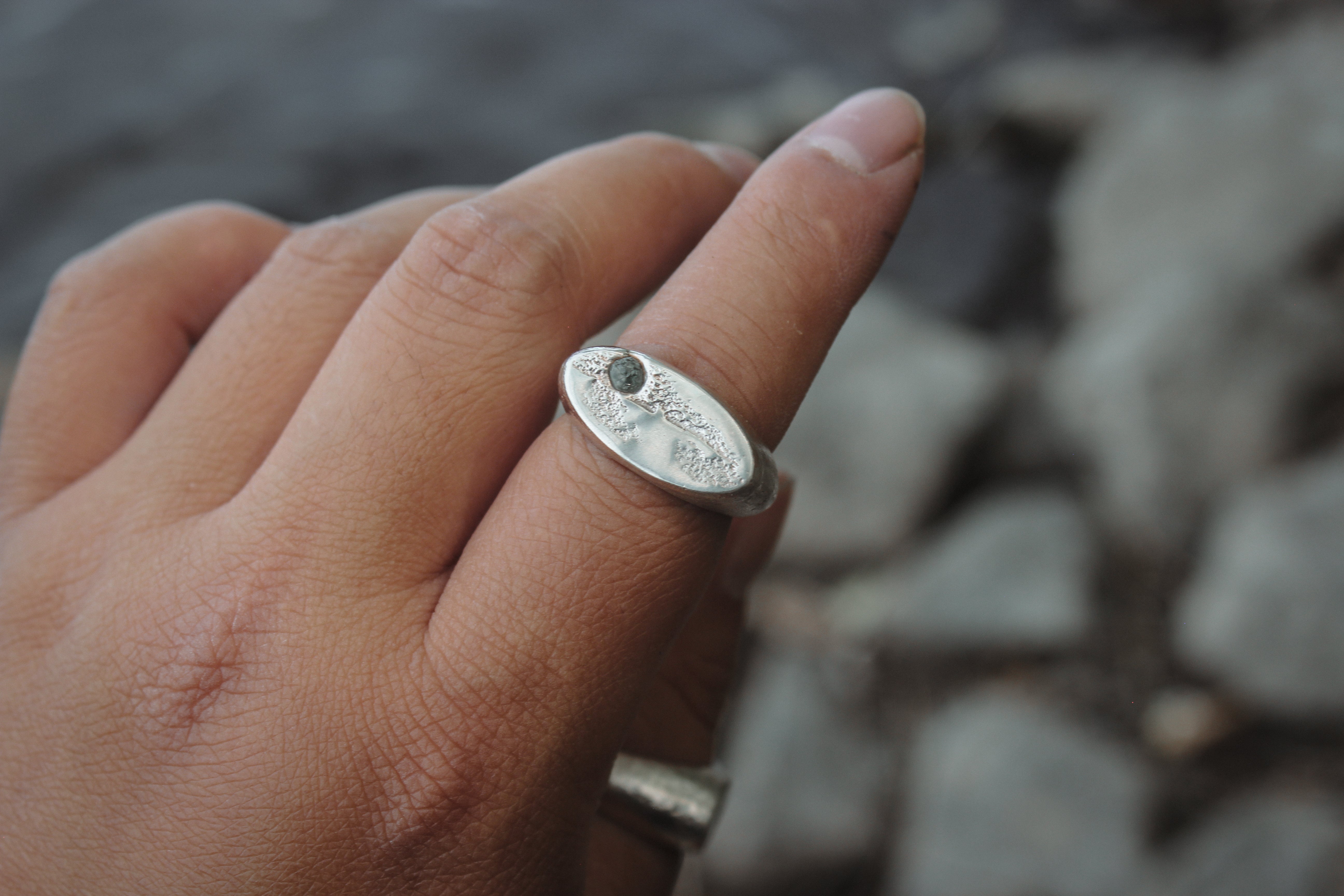 The Relic rings are sand casted by hand from scrap sterling silver, breathing new life into worn metal. Molten metal flows through red sand, cooling to a carved shape or ring that was molded by hand using ancient techniques dating back hundreds of years. The grit and texture have been left visible, scars from it's old life, making each piece completely unique and special. Built to last for decades, perhaps centuries before they see the hot flame once more. A relic for the future.