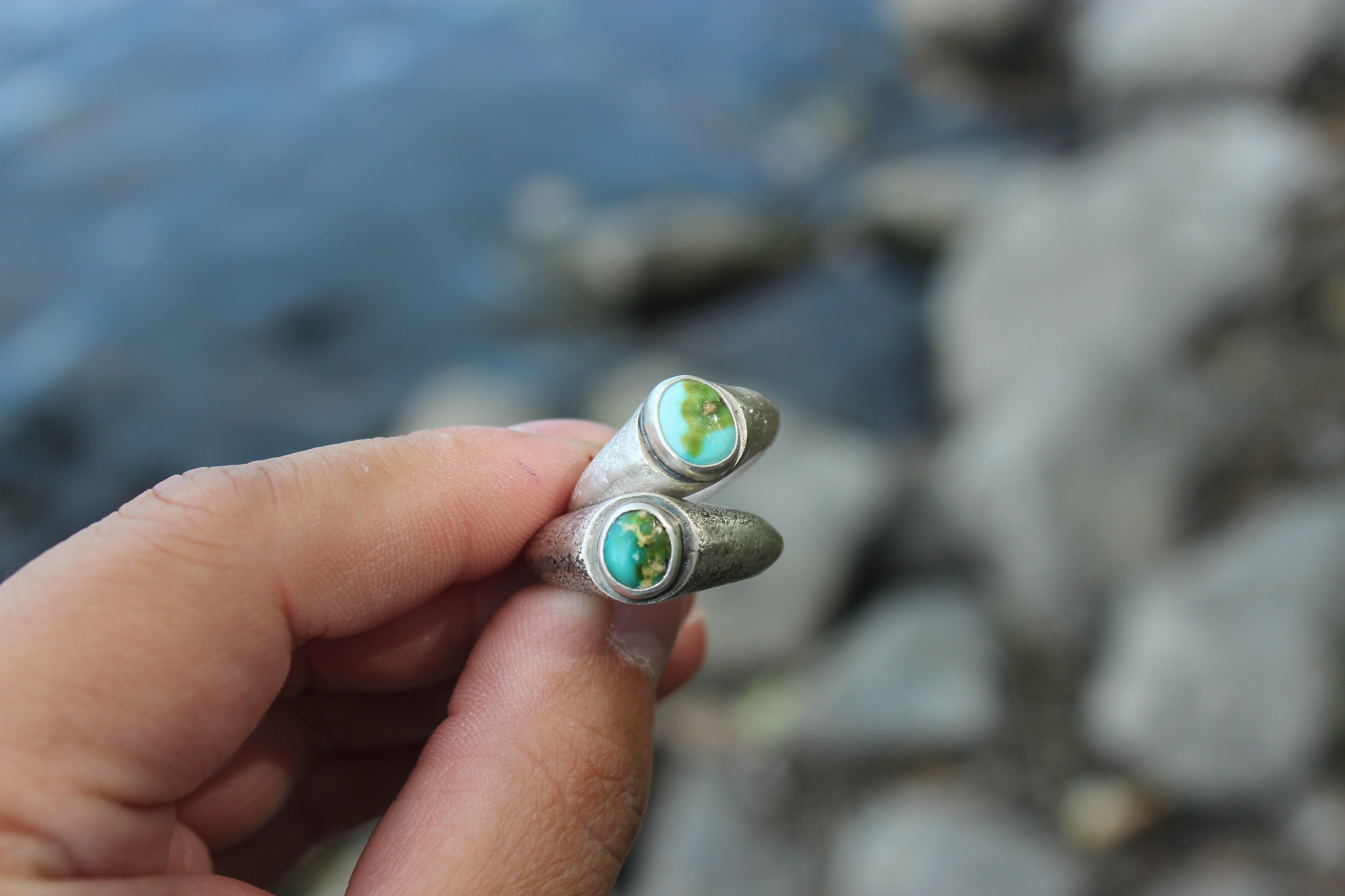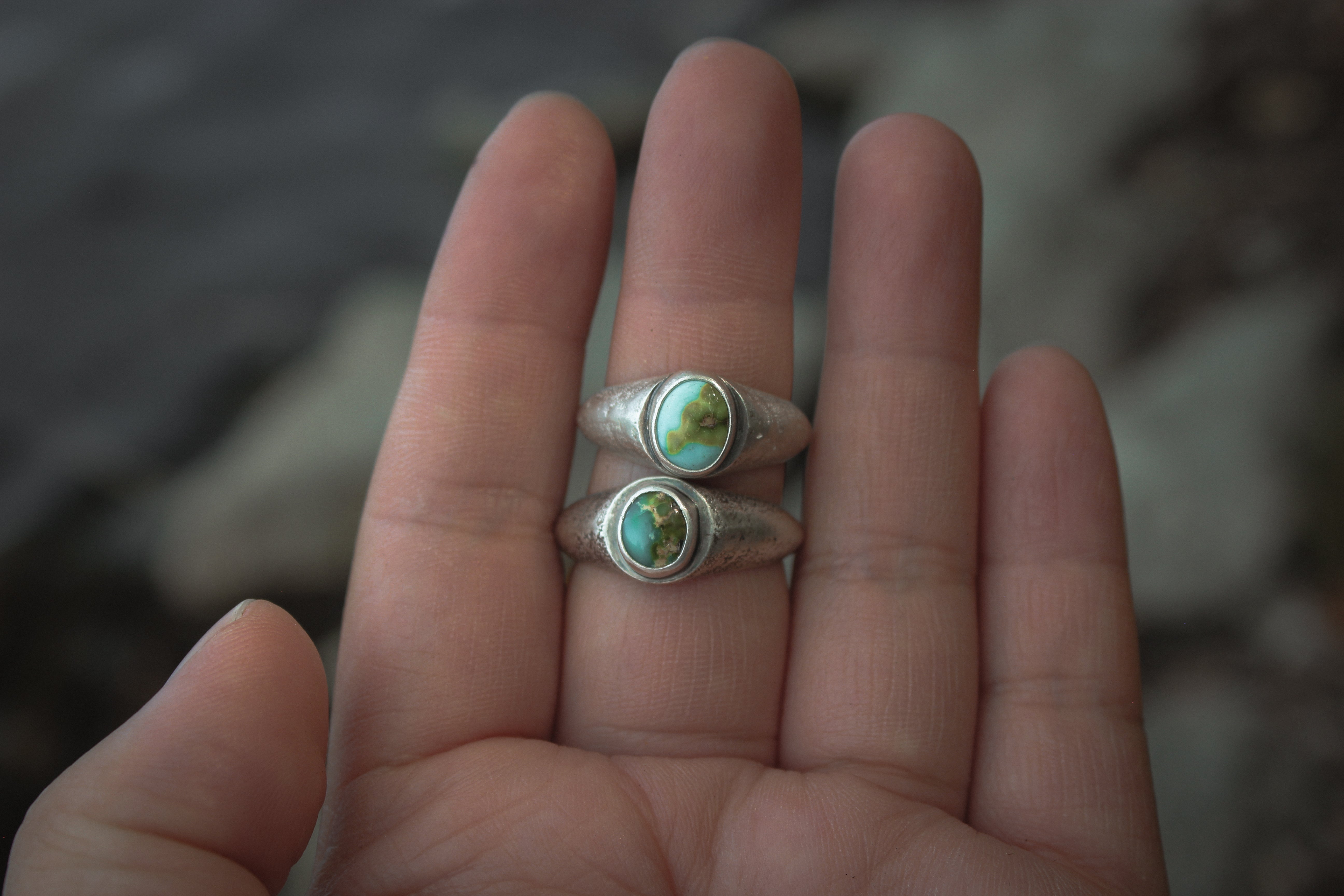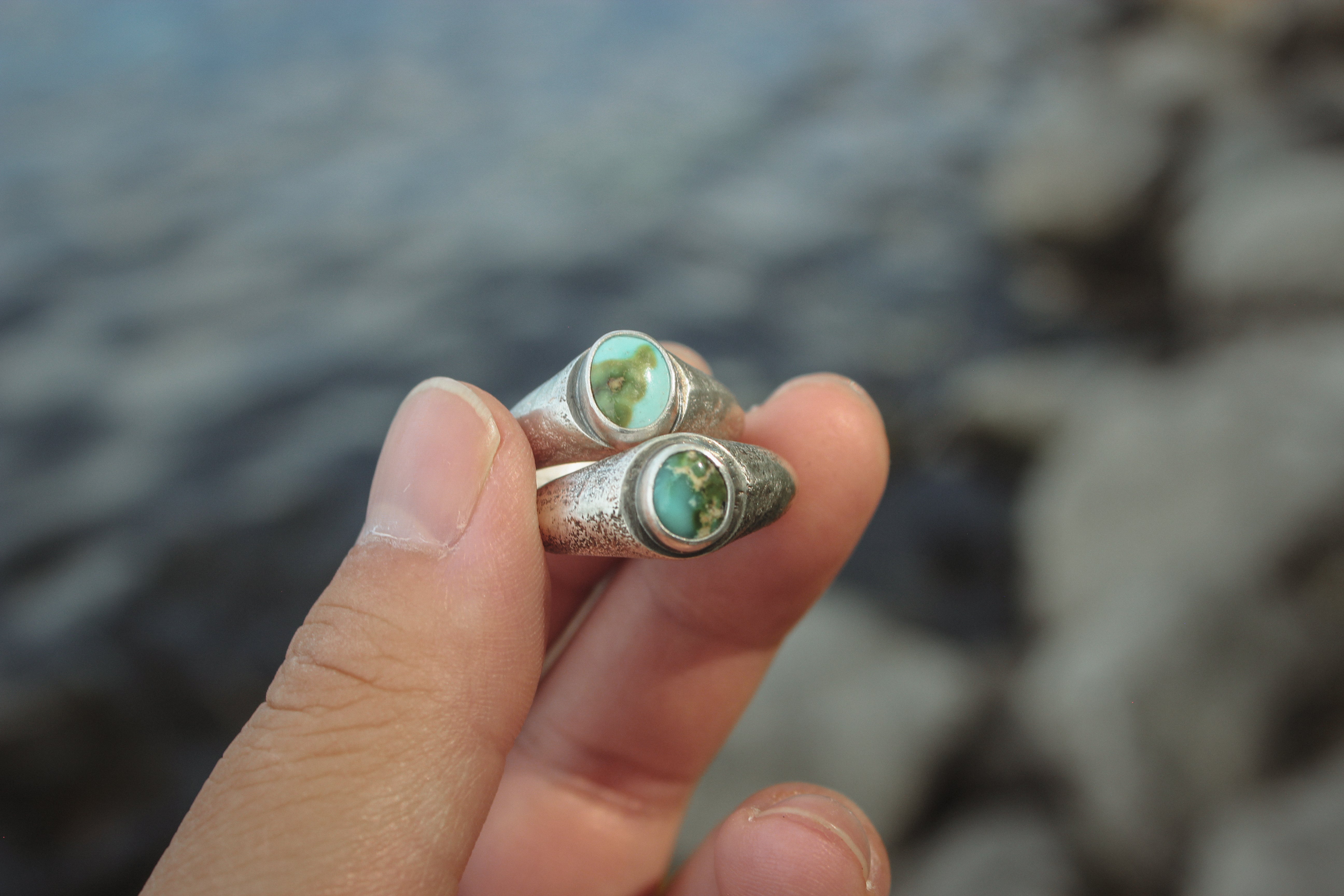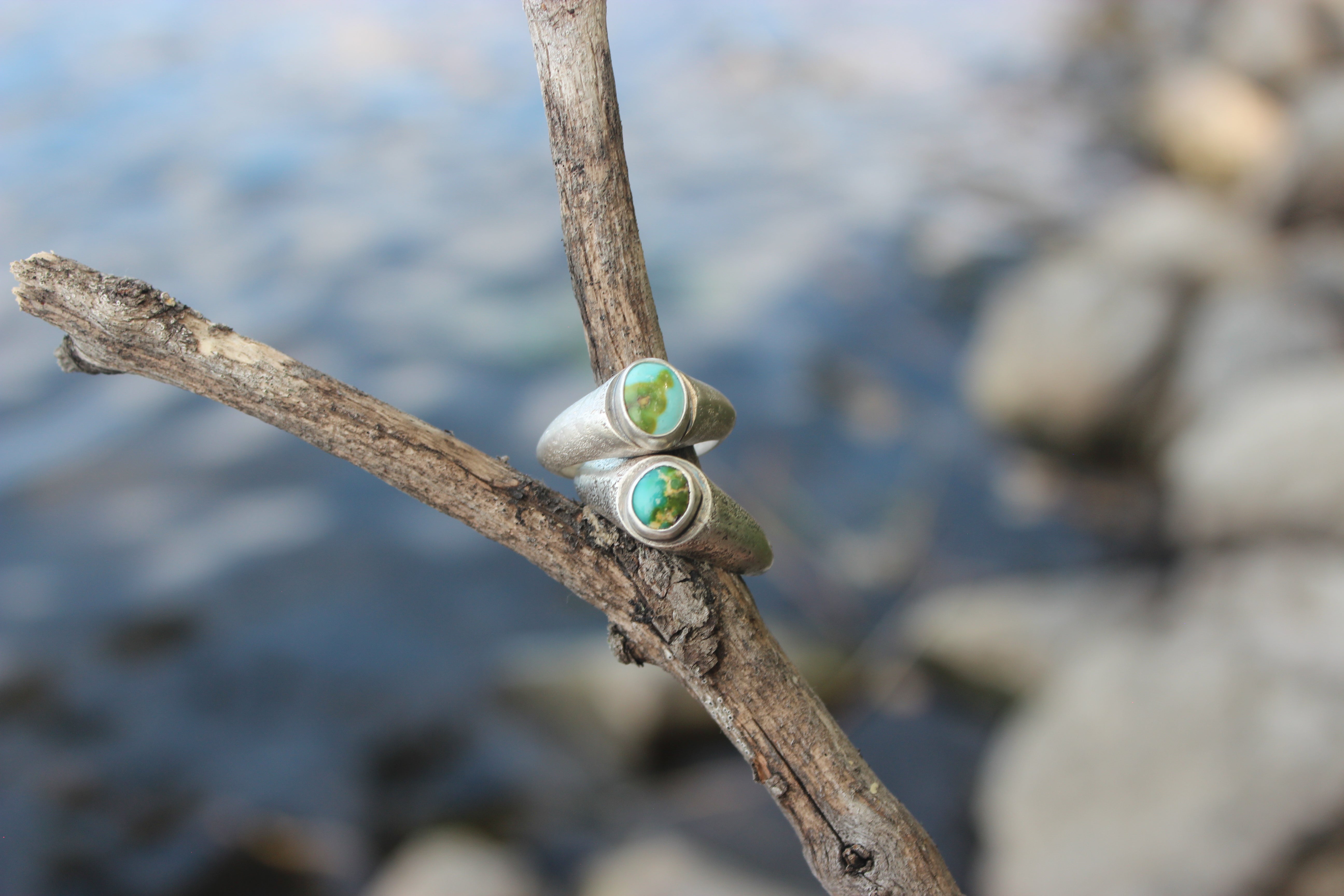These rings have been topped with gorgeous green and blue Sonoran Gold Turquoise, like islands upon deep ocean waters. Choose your ring from the menu!