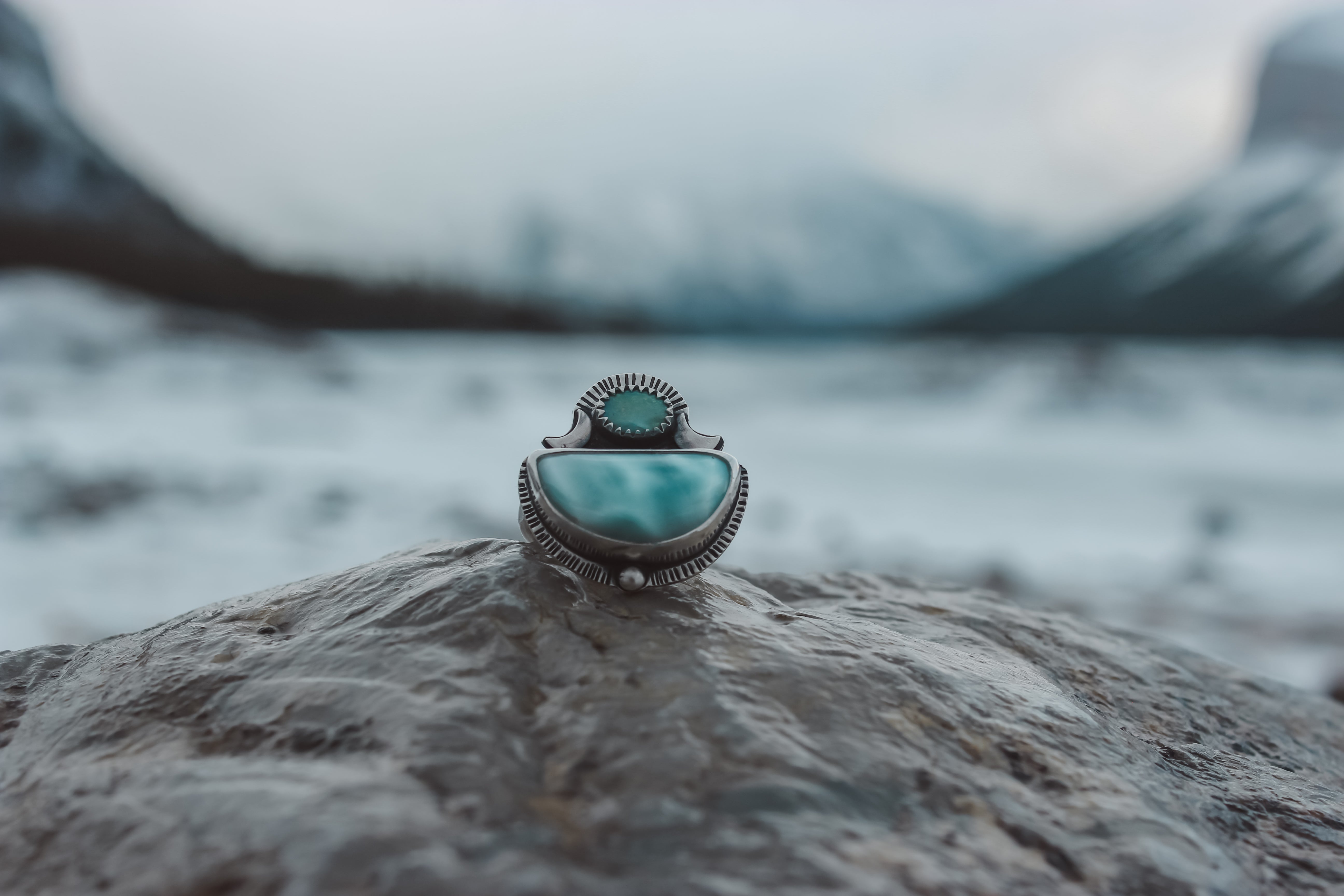 Amphitrite is the goddess of the sea, ruling over the depths of the ocean alongside Poseidon. There is a regal quality to this ring, armor built for a goddess with stones as blue as the ocean waves. Larimar is a stone only found in the Dominican Republic, harnessing the Caribbean waters in each stunning stone.