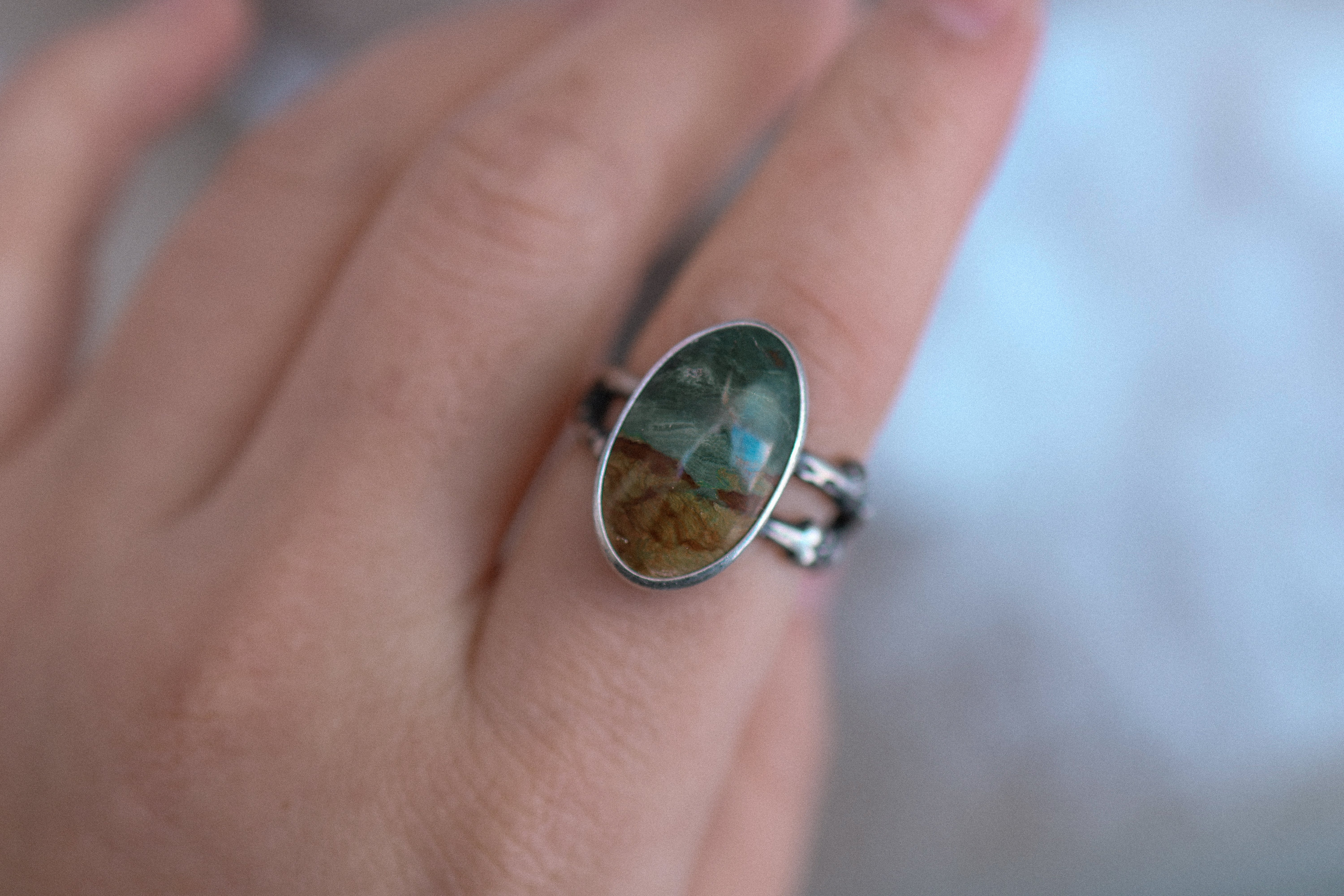 Natural textures & soft, satin silver. Carry the landscape with you wherever you go.
