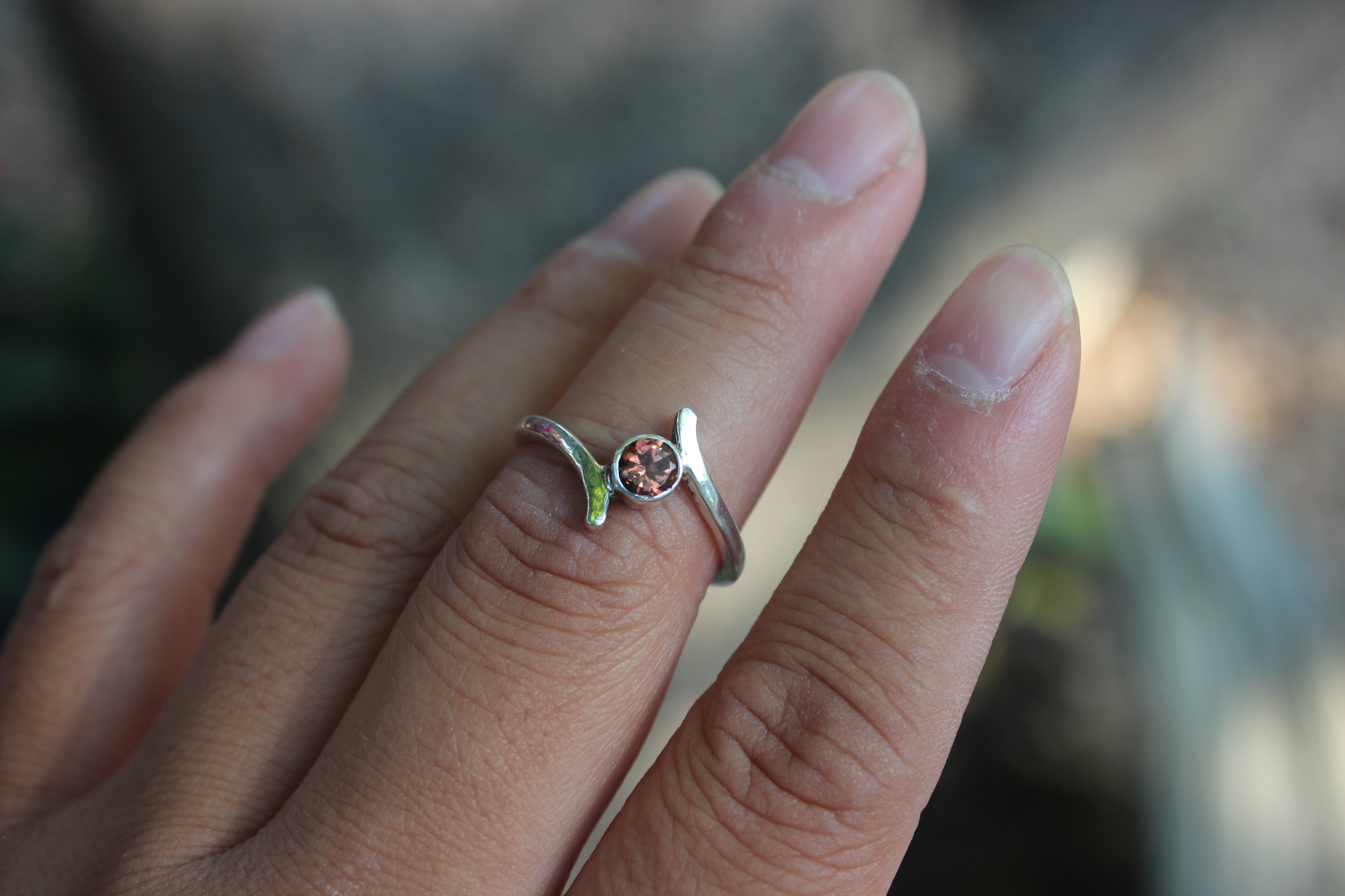 A stunning faceted topaz stone radiates in the sun as it sparkles and dances along the light. An elegant, dainty ring, perfect for everyday wear.