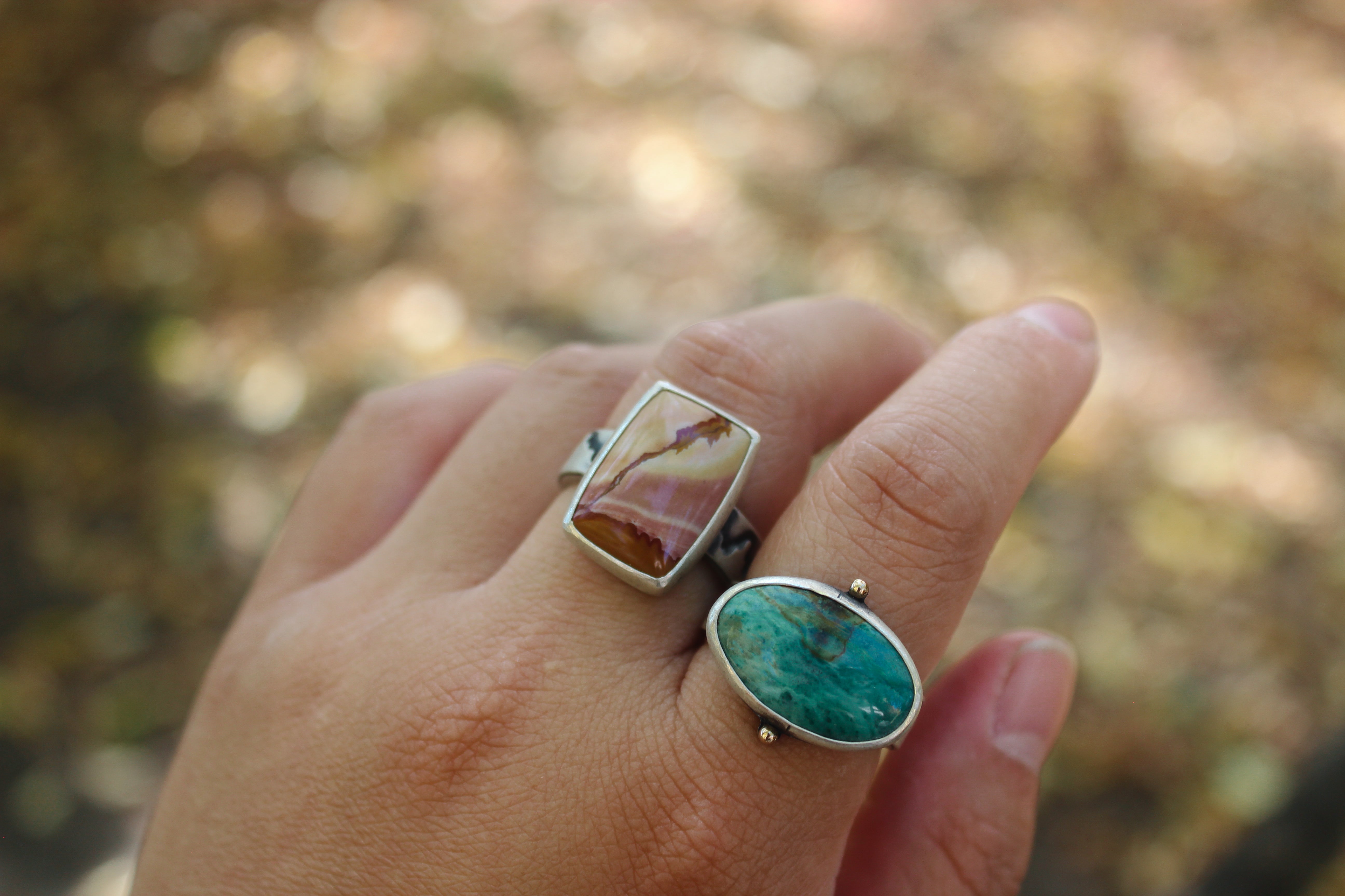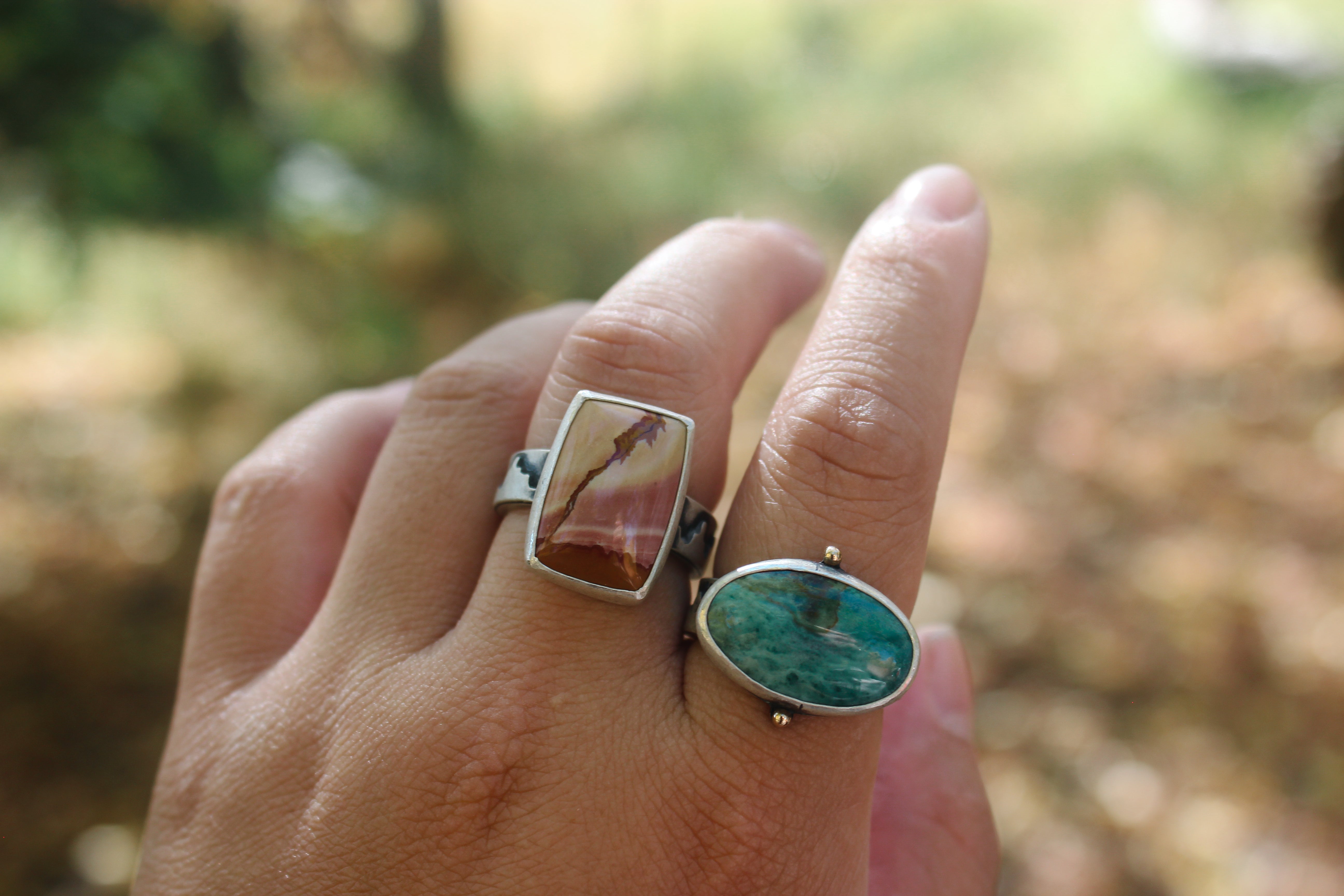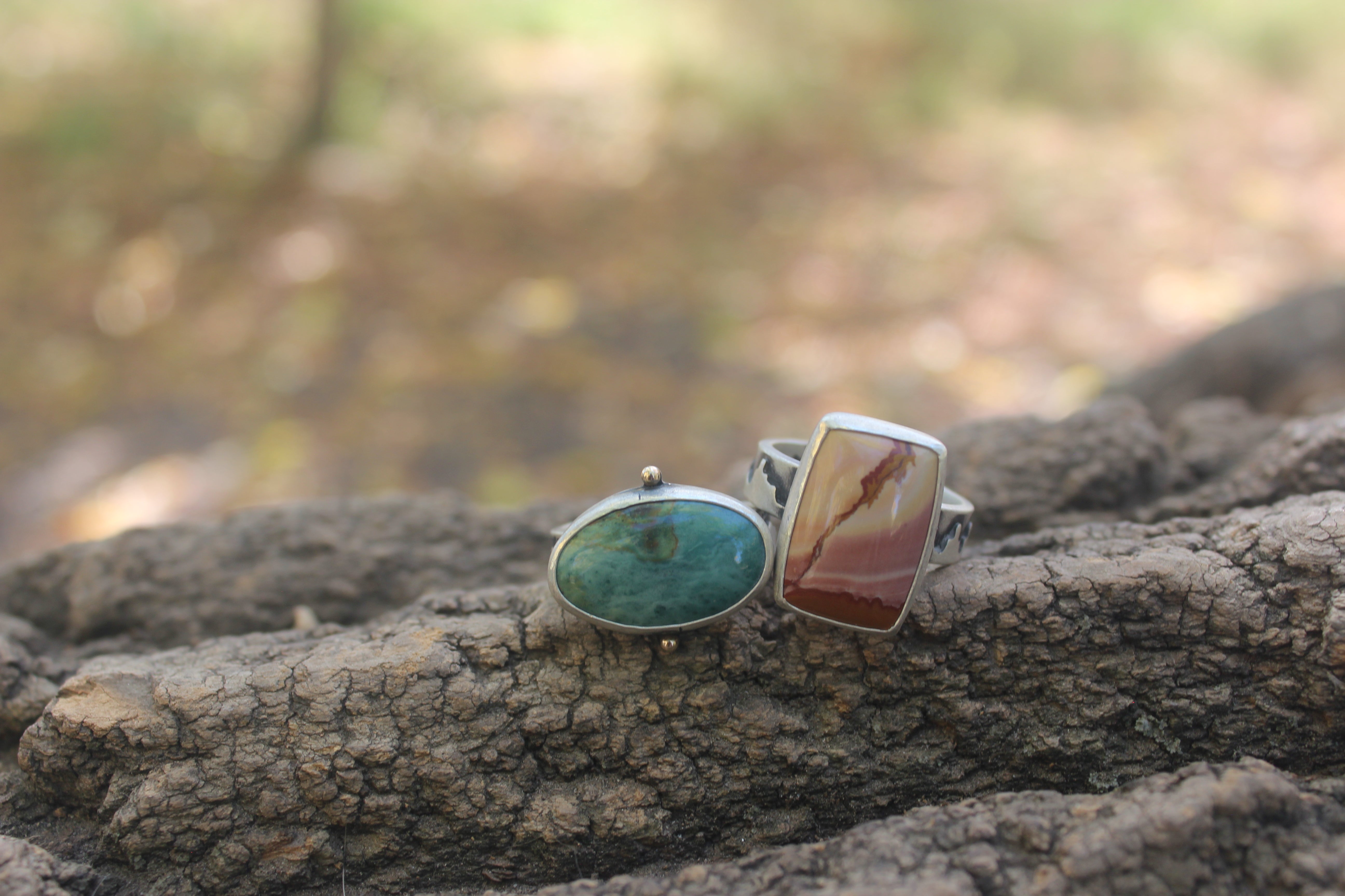 This listing is for one ring (only the blue green stone), the other has sold already.