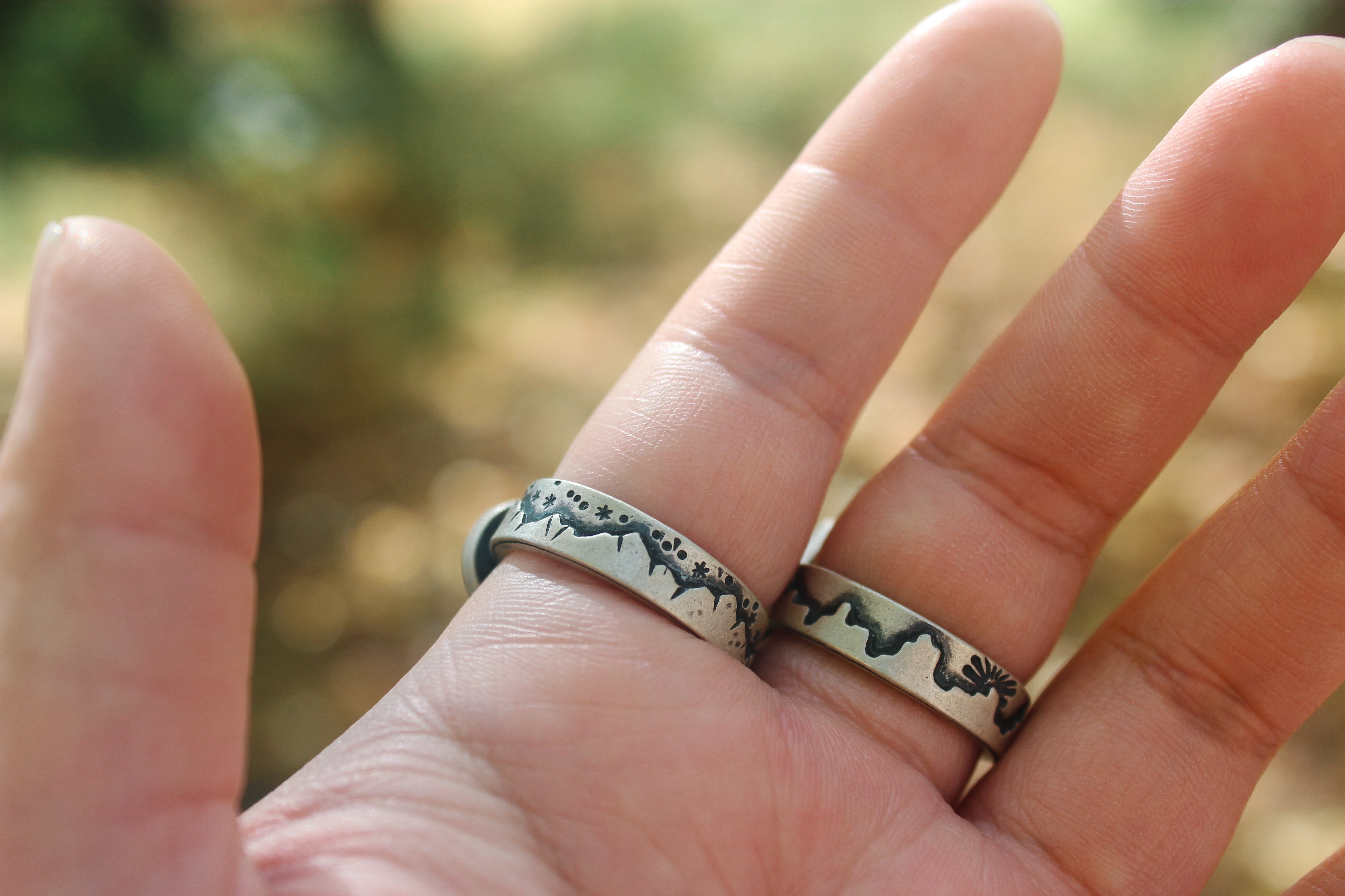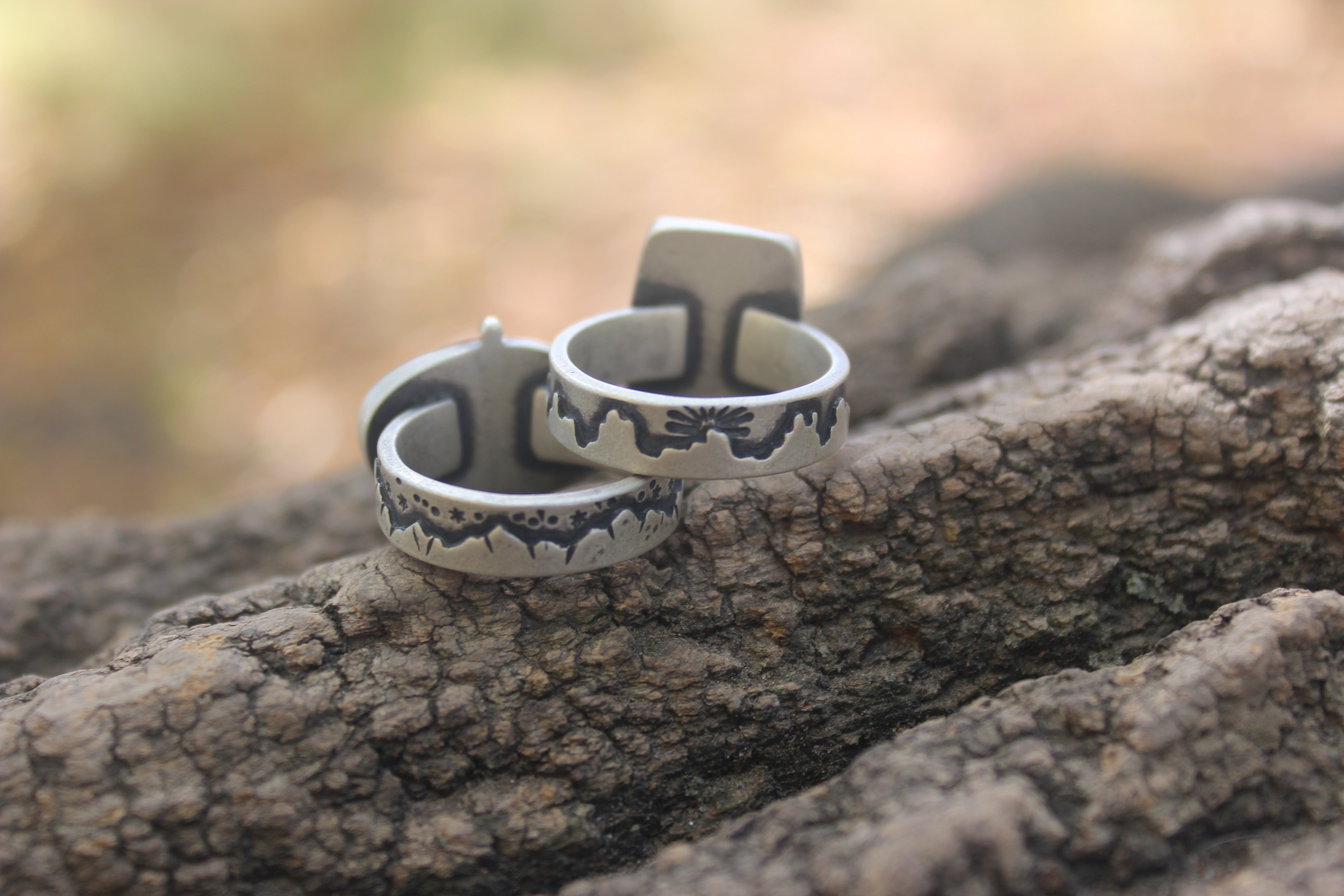 Natural textures & soft, satin silver. Carry the landscape with you wherever you go.