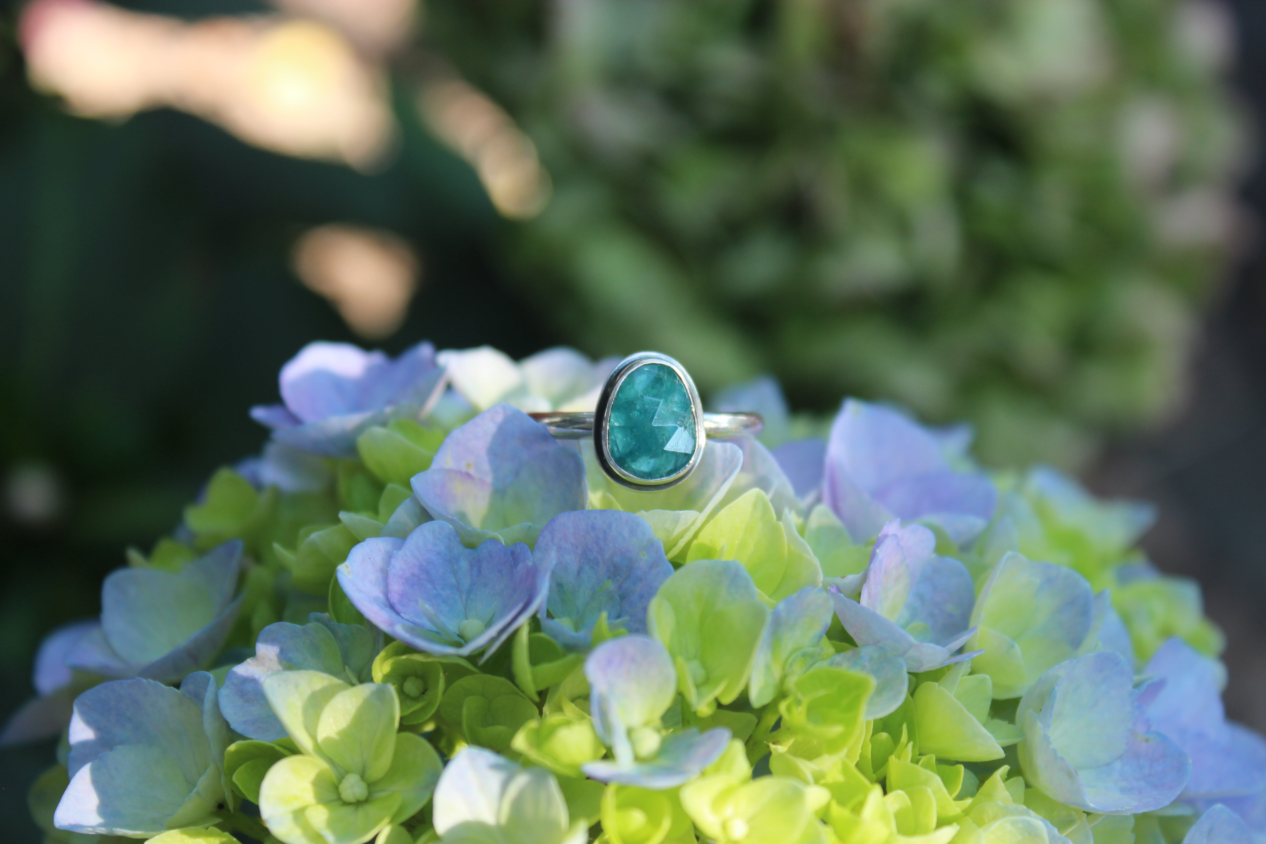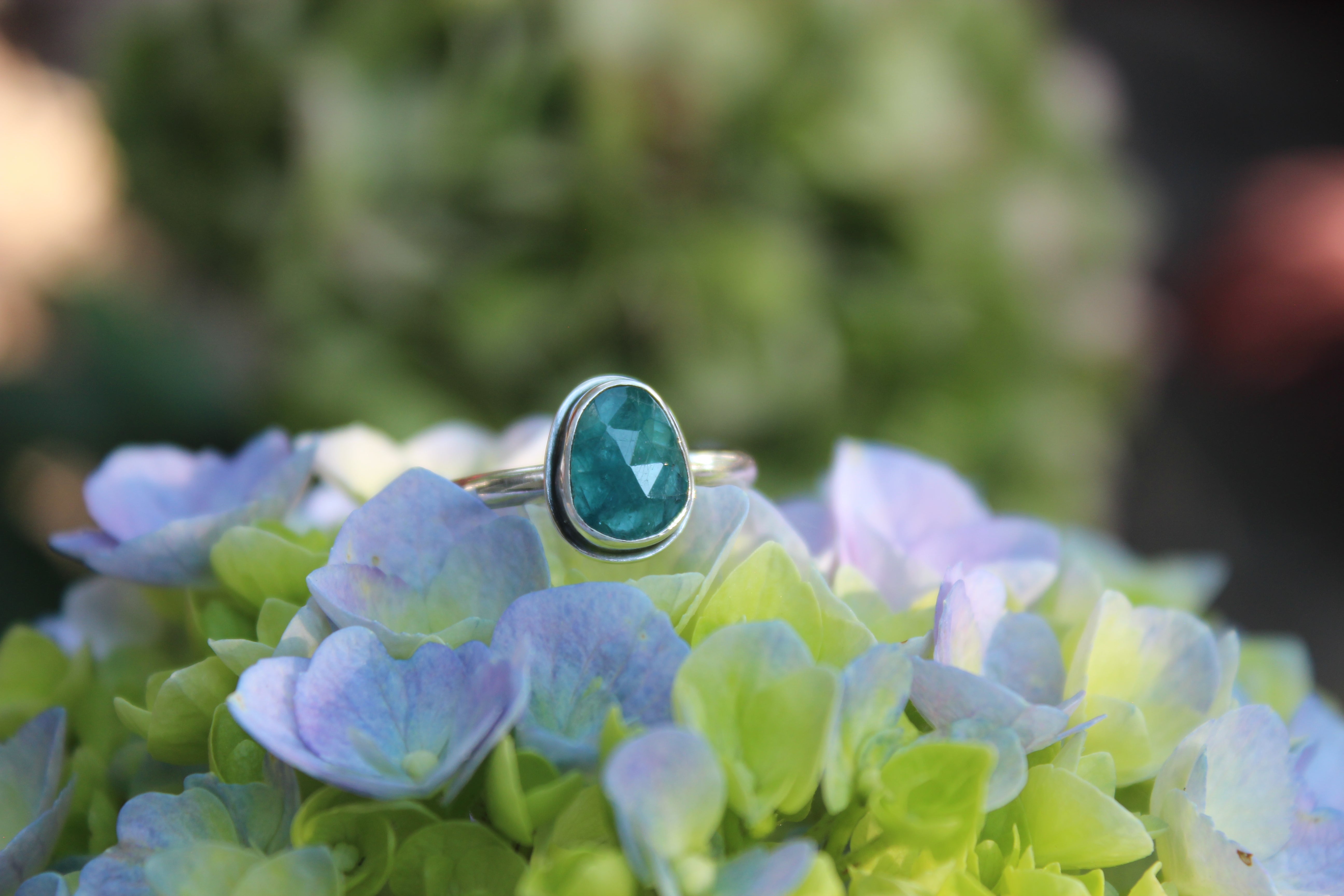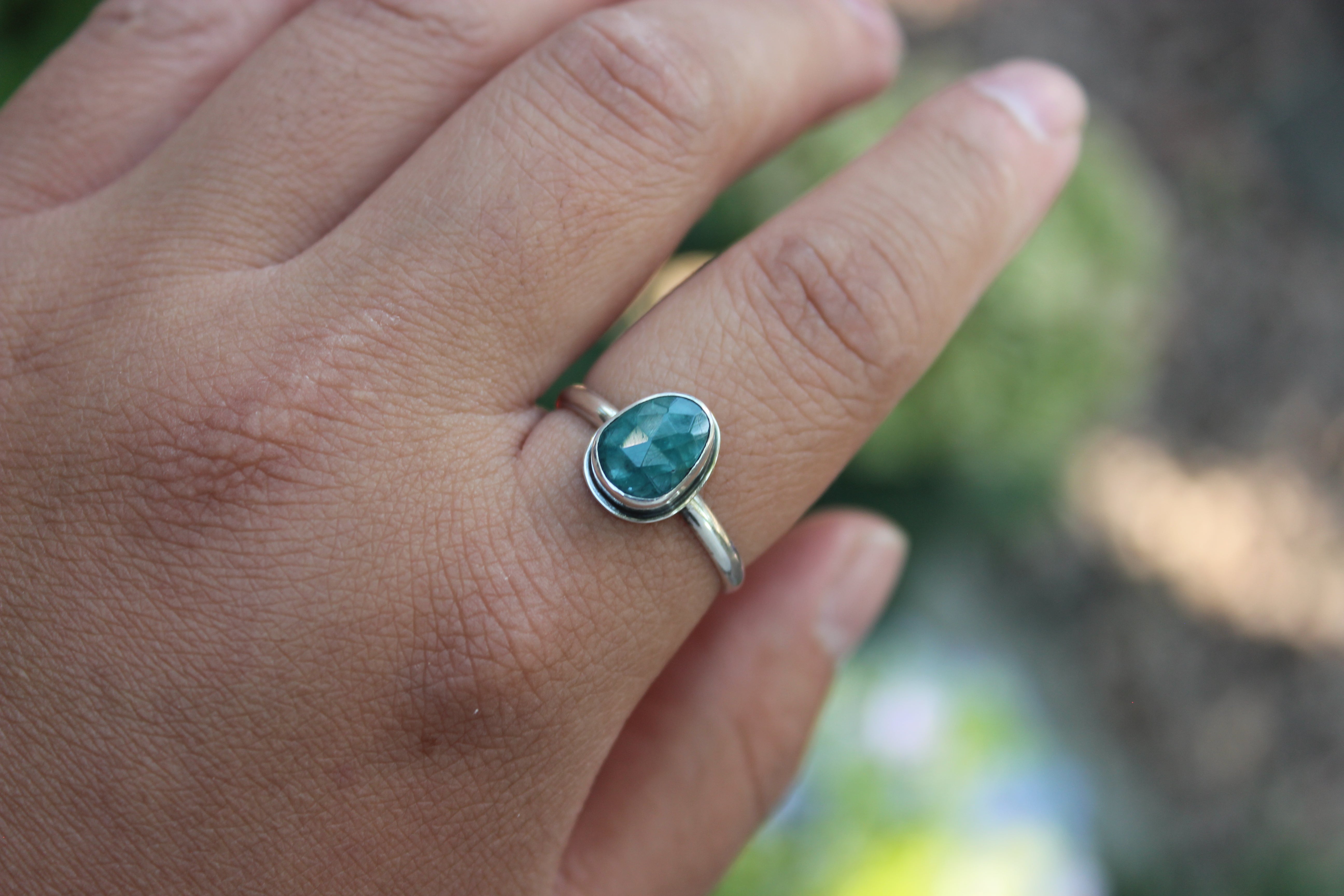 The glowing teal is stunning, it captures the light perfectly! Wear it on its own or stack it with your other rings!