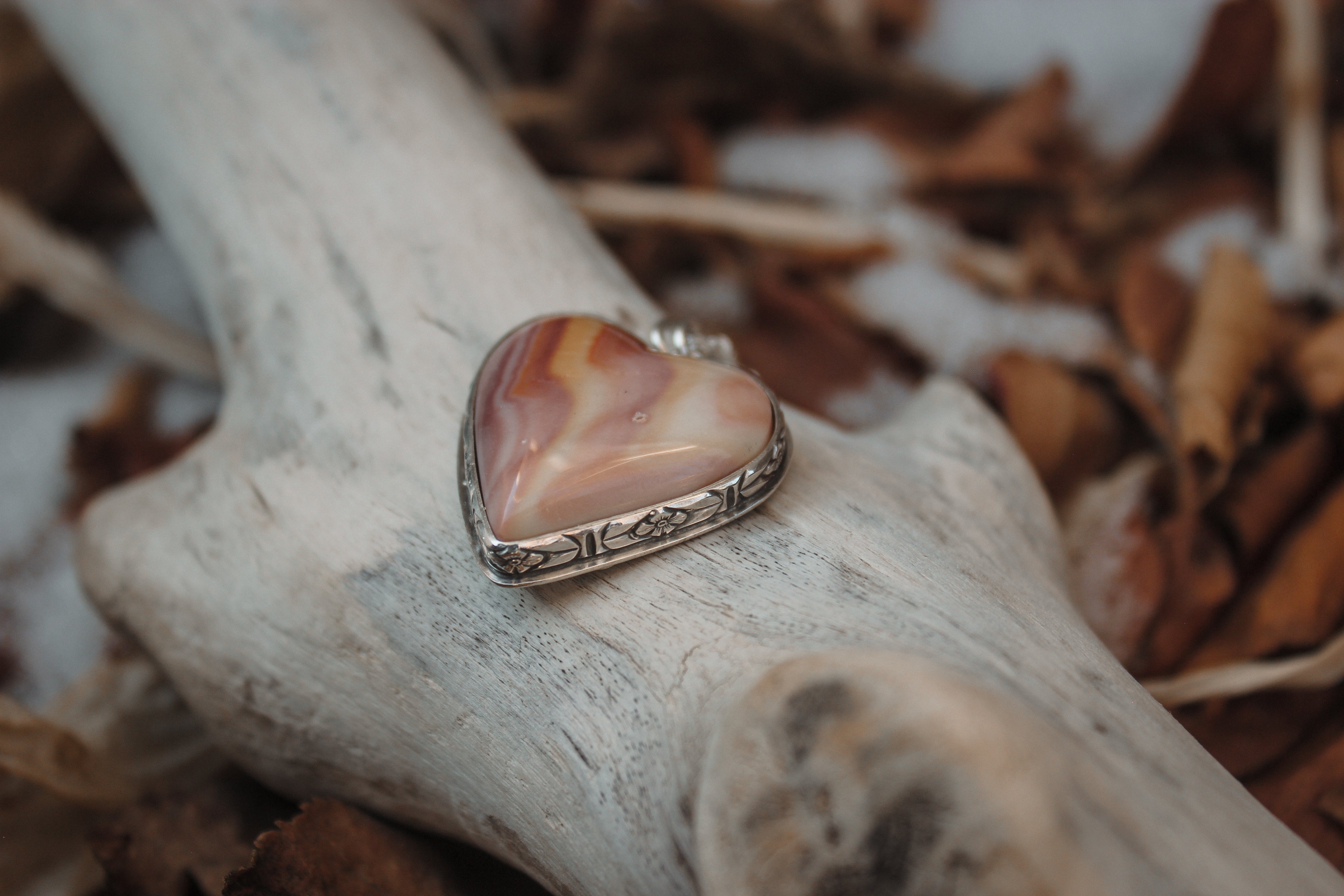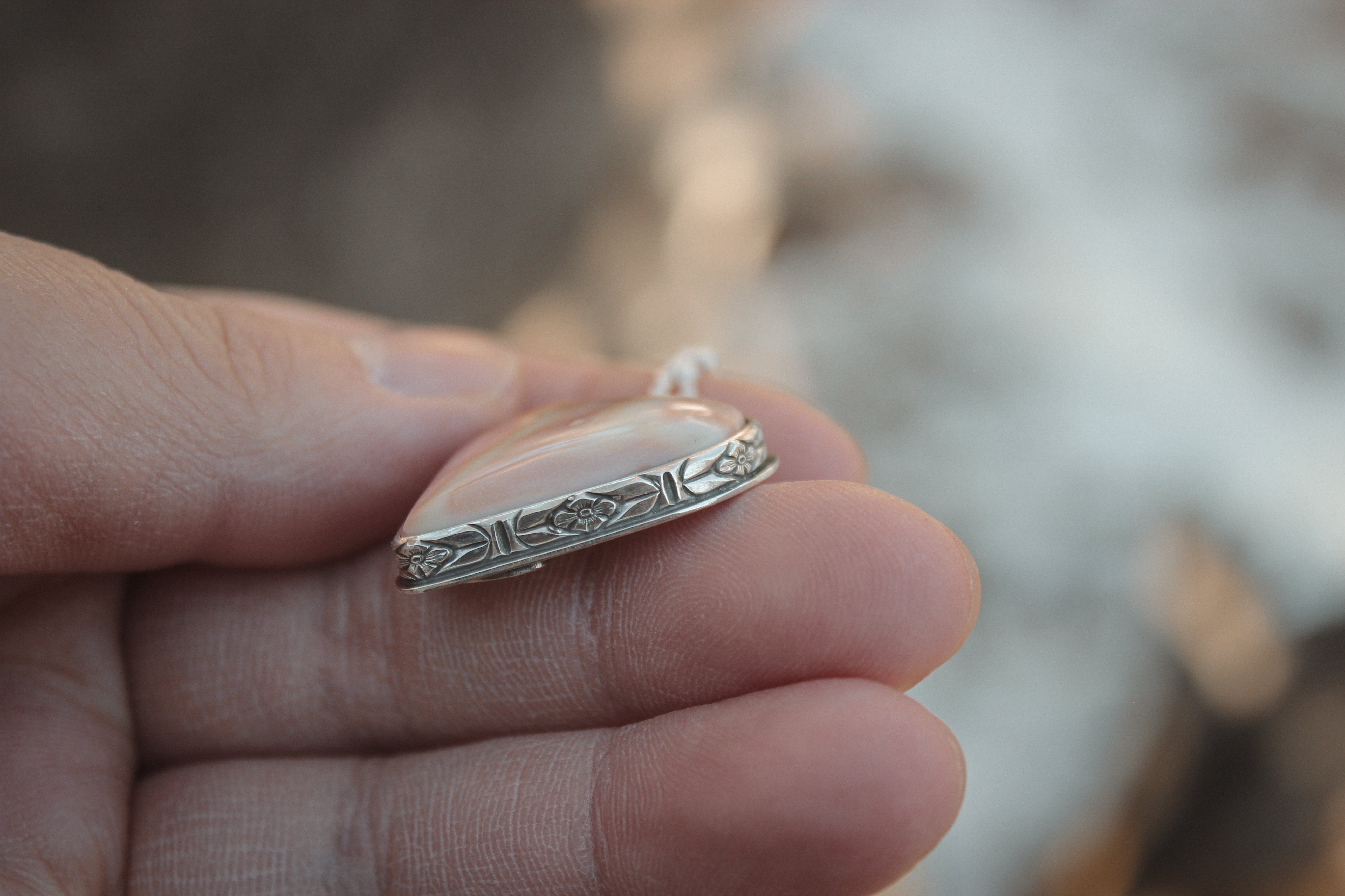 Natural textures & soft, satin silver. Carry the landscape with you wherever you go.