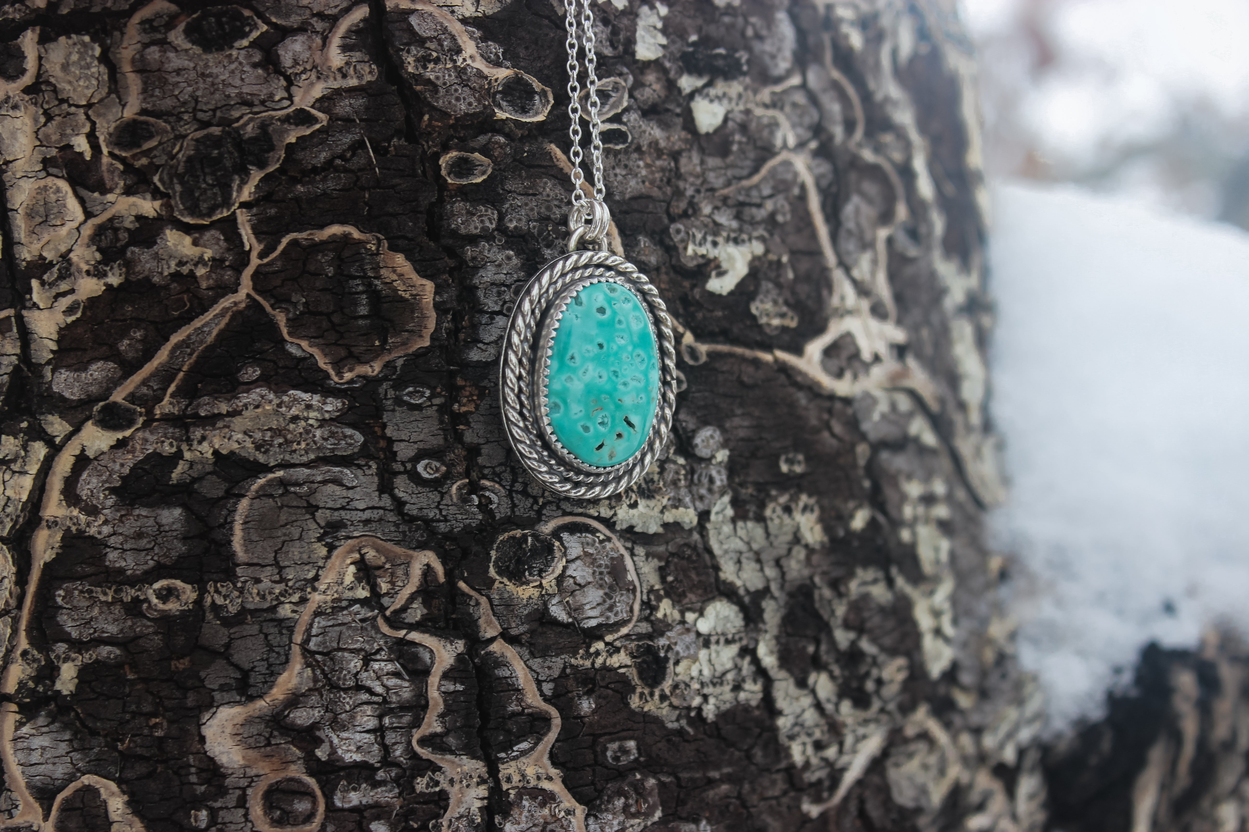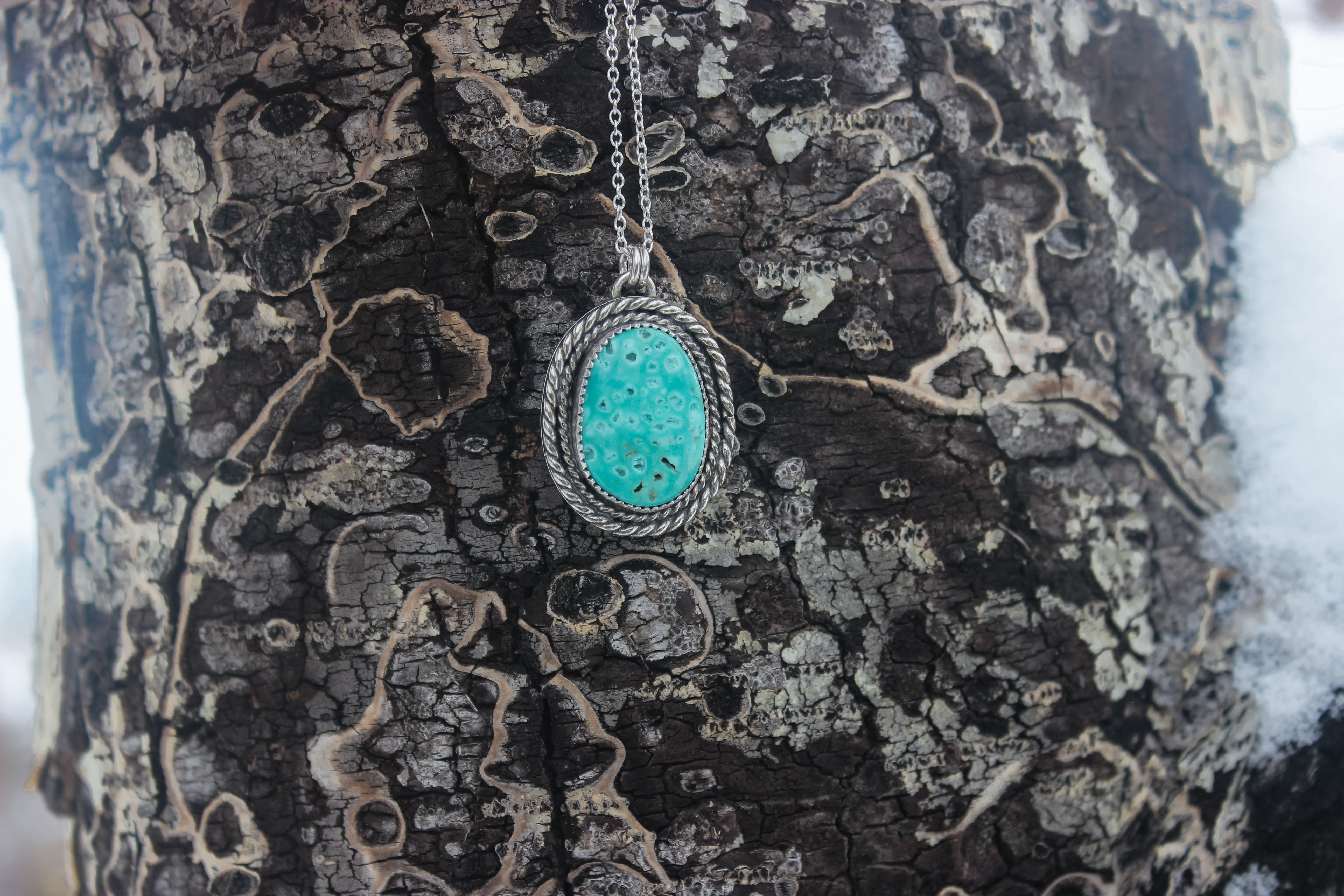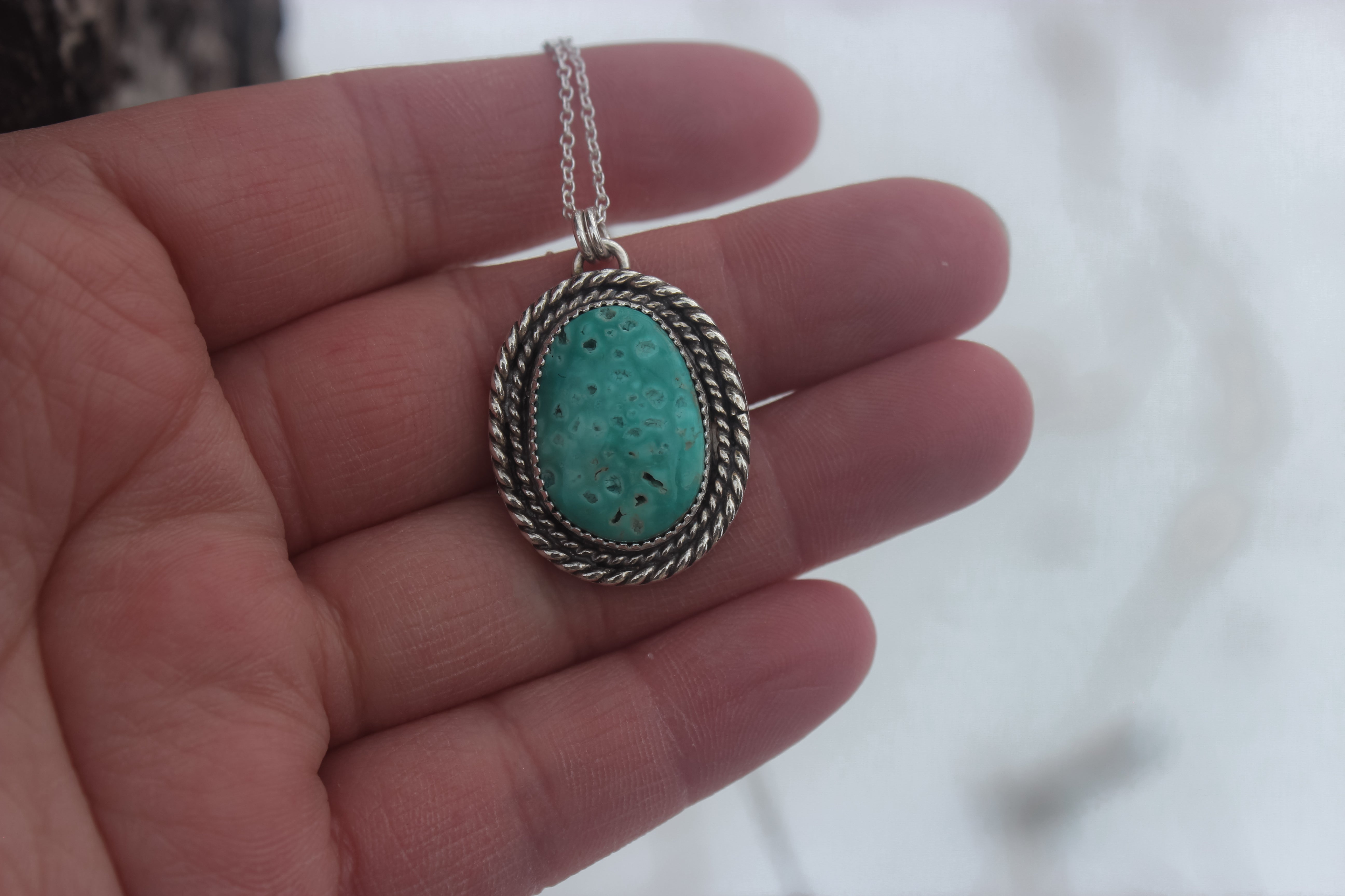 The aqua blue color in this Campitos turquoise is just as vivid in real life! The bright blue tones mixed with the little white speckles and divots are reminiscent of tidepools, little pockets of water on a tropical beach. I've been holding onto this piece of turquoise for years, and it was finally time to set her free.