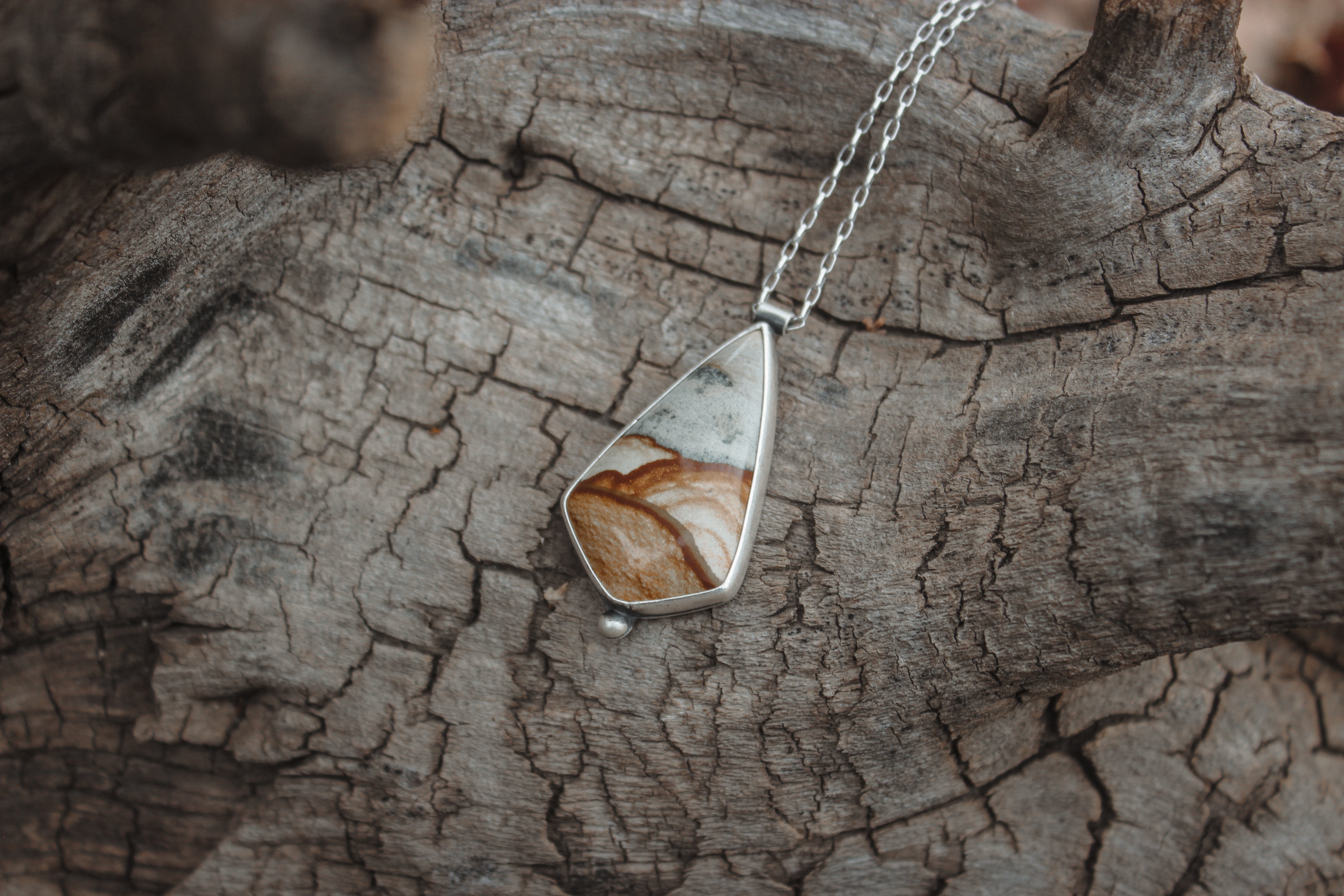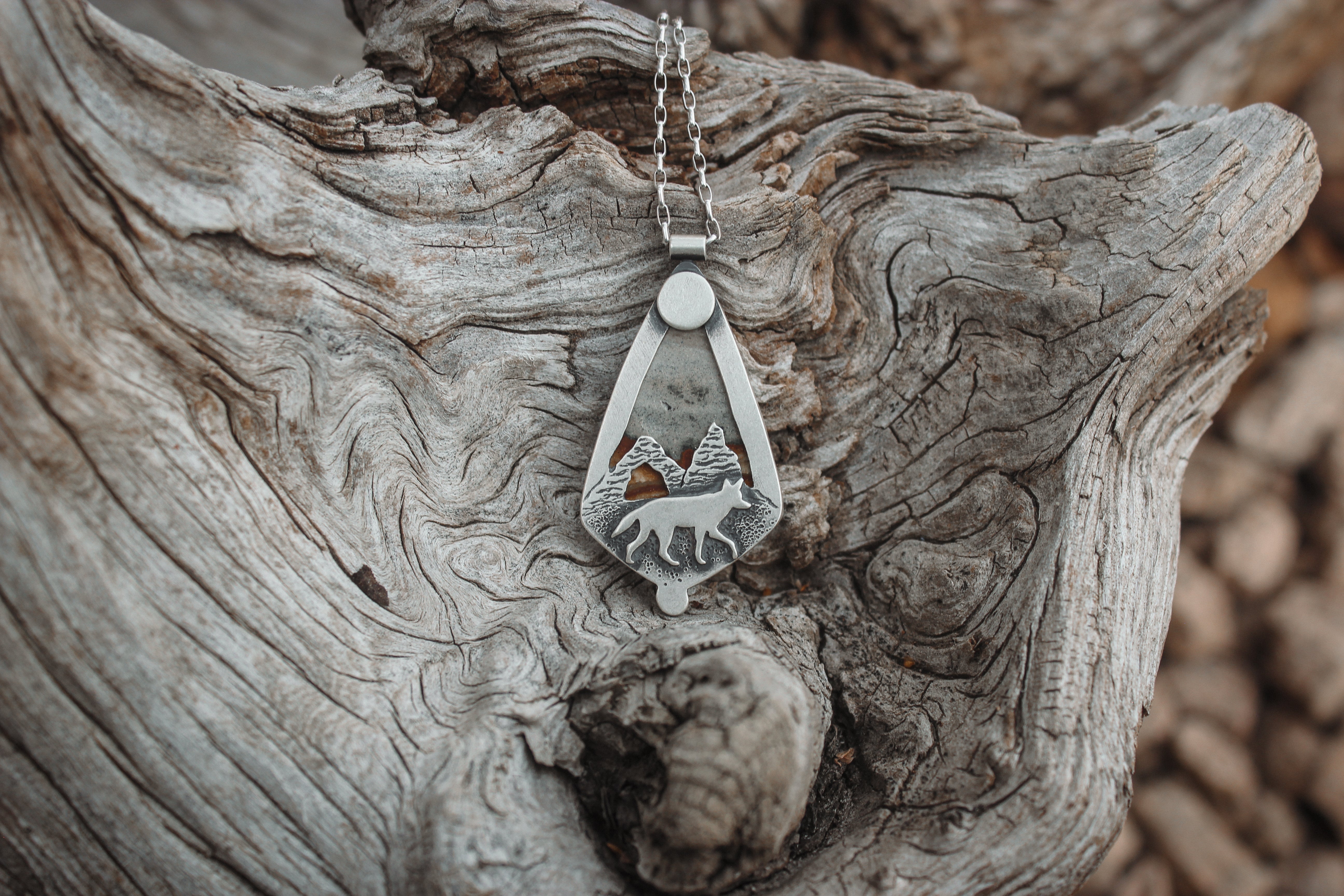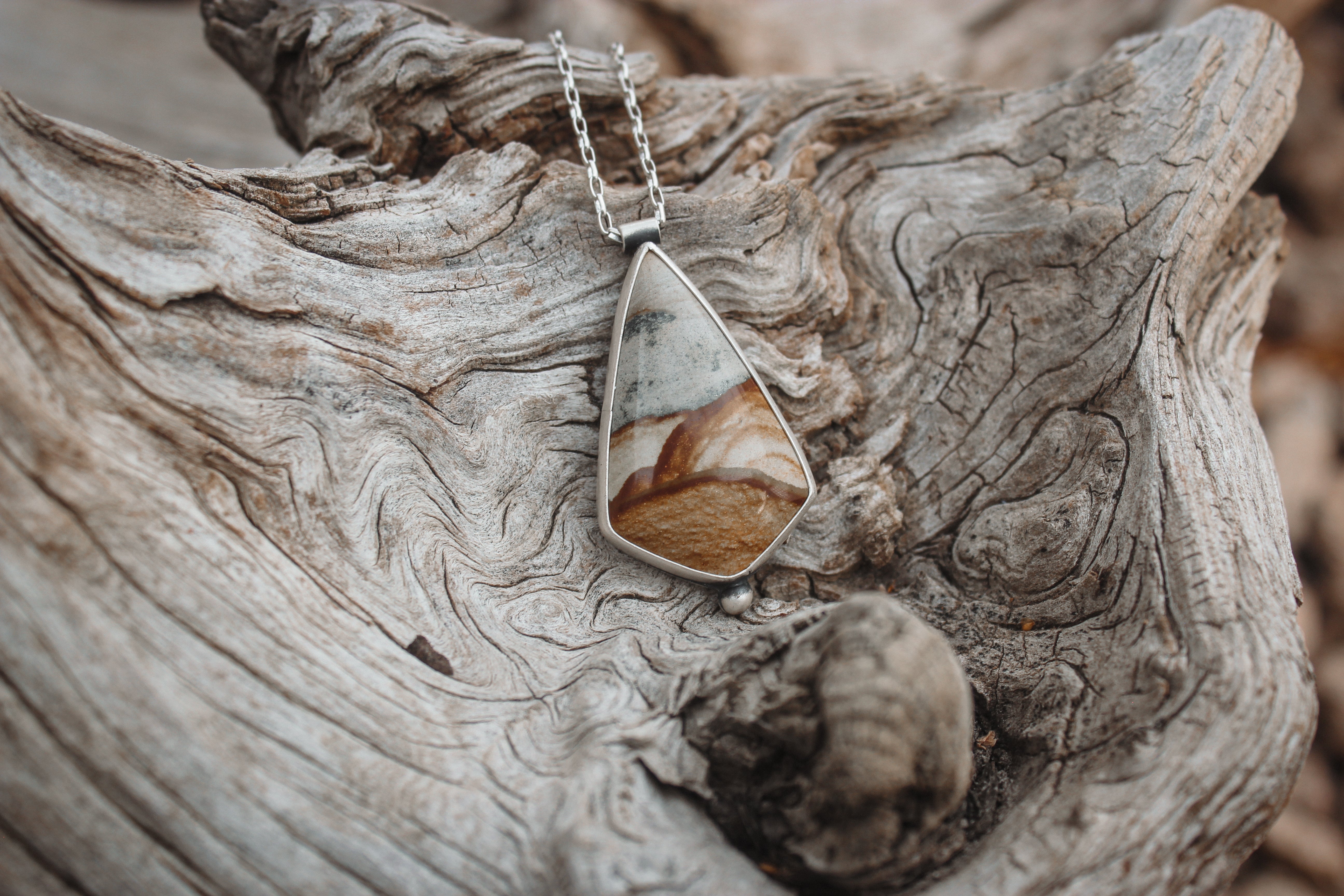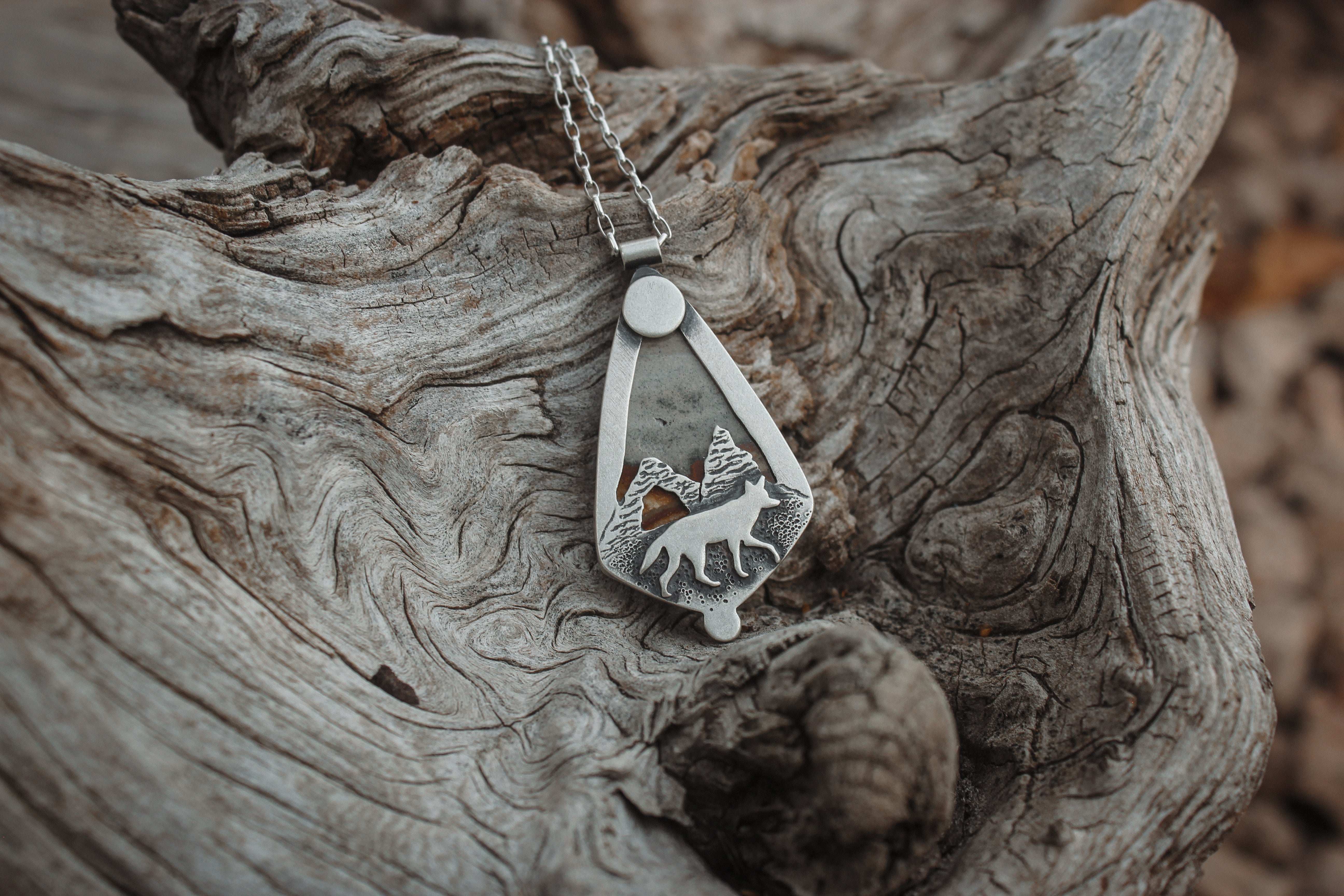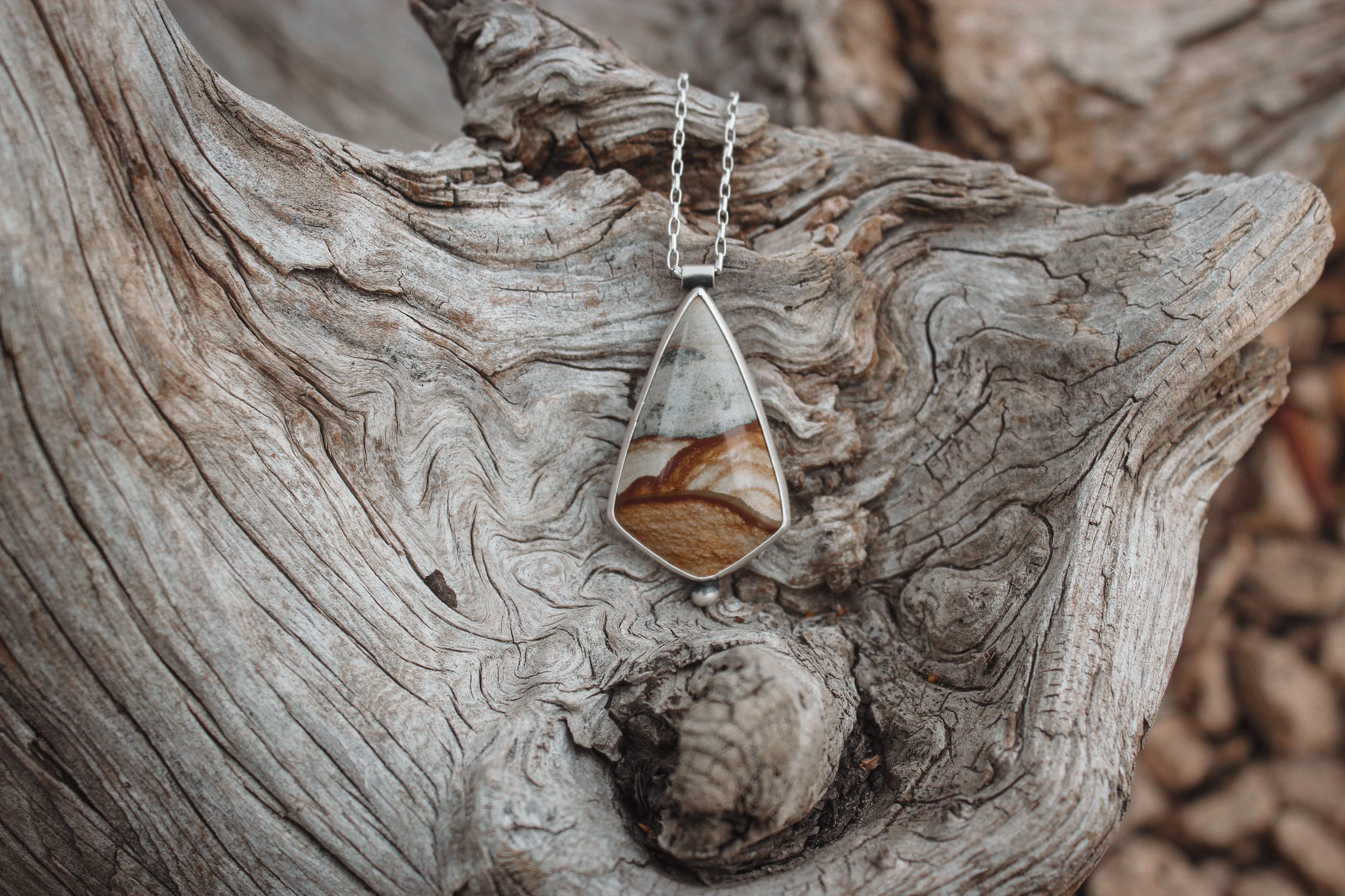 Natural textures & soft, satin silver. Carry the landscape with you wherever you go.