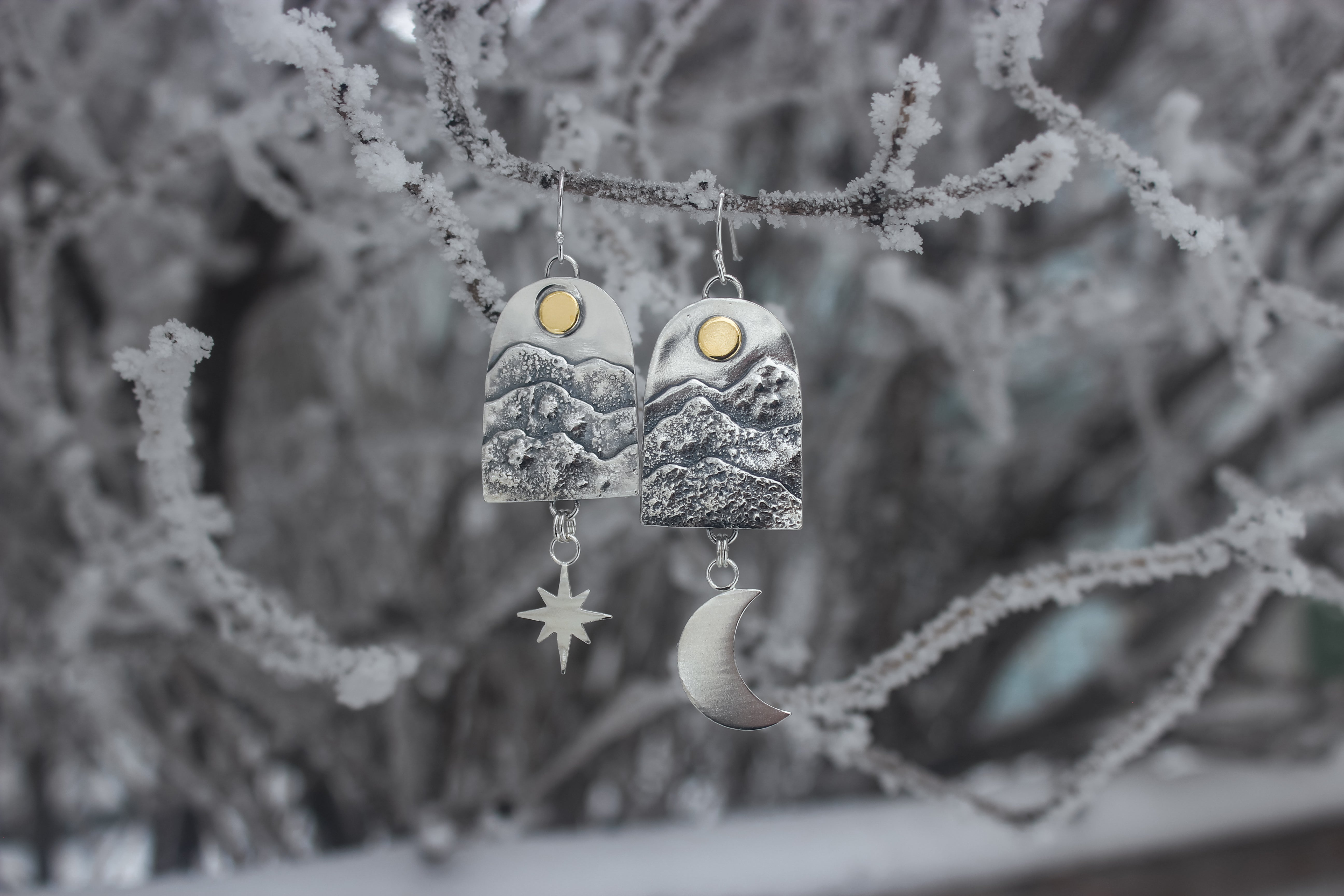 Natural textures & soft, satin silver. Carry the landscape with you wherever you go.