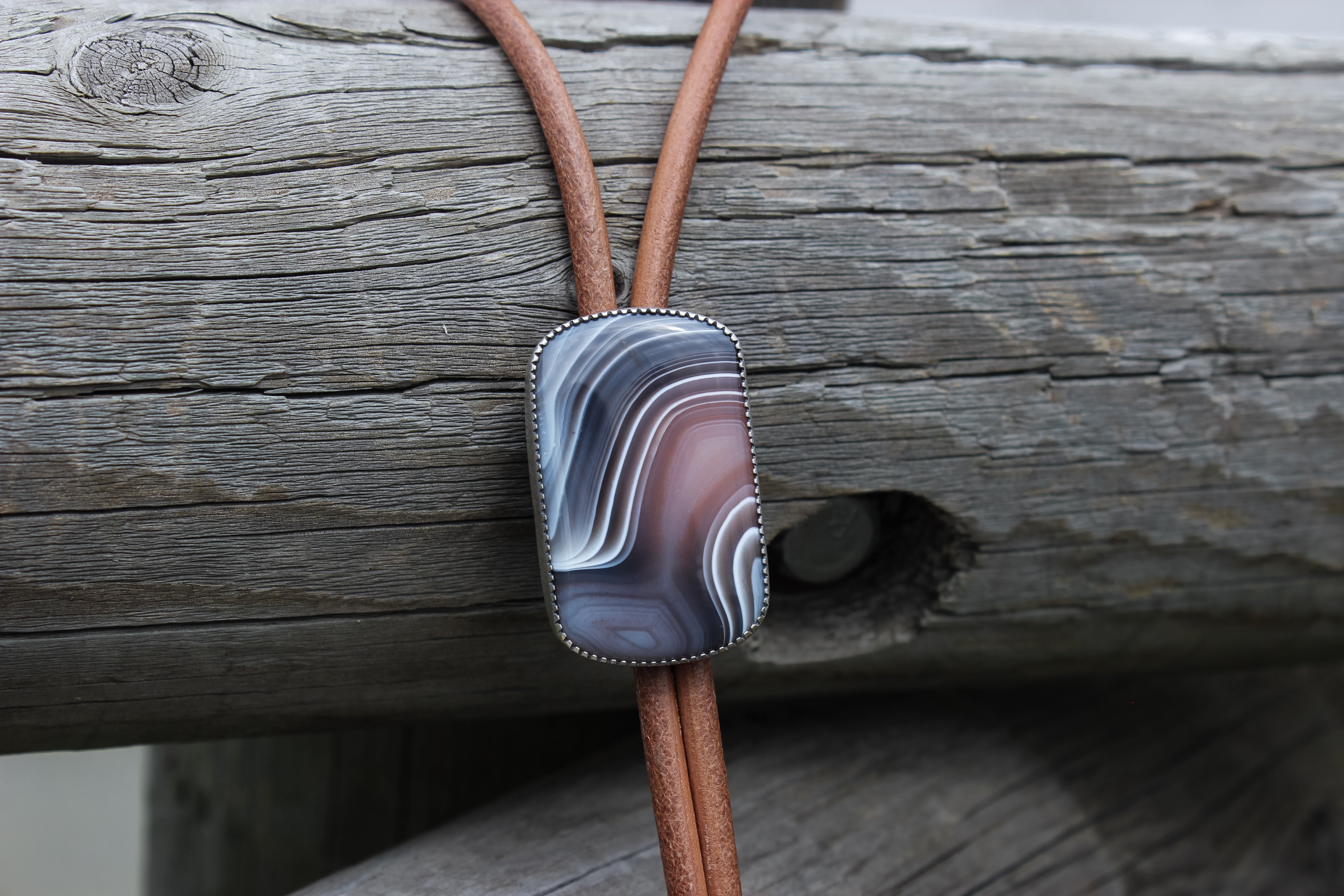 Thick leather cord is 42" long, fully adjustable by sliding the bolo up or down